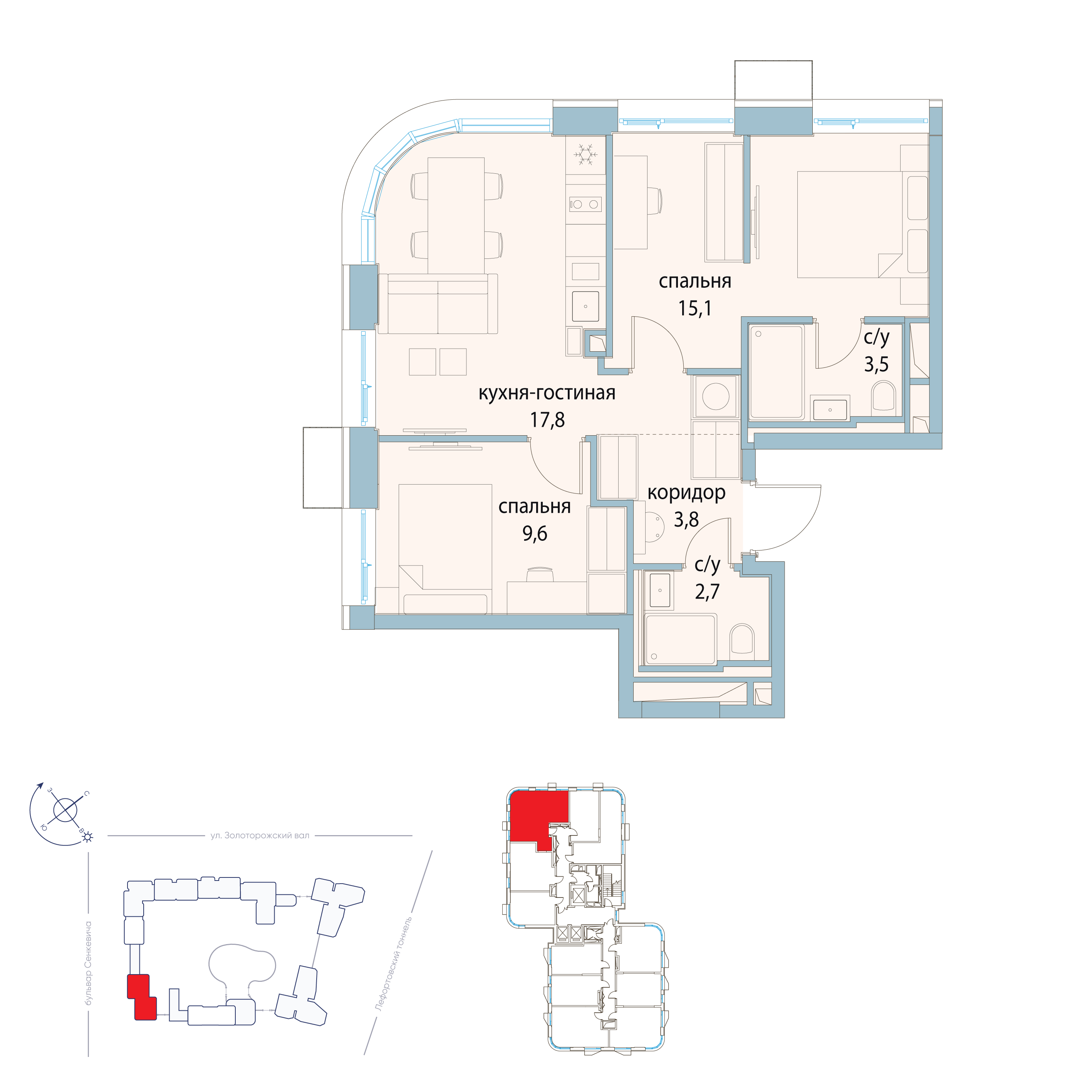 Купить 1к квартиру 53 м² в ЖК Павелецкая от Гранель