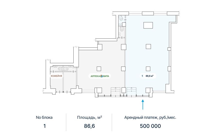 Сдается торговое помещение 88,6 кв.м. с двумя отдельными входами.
