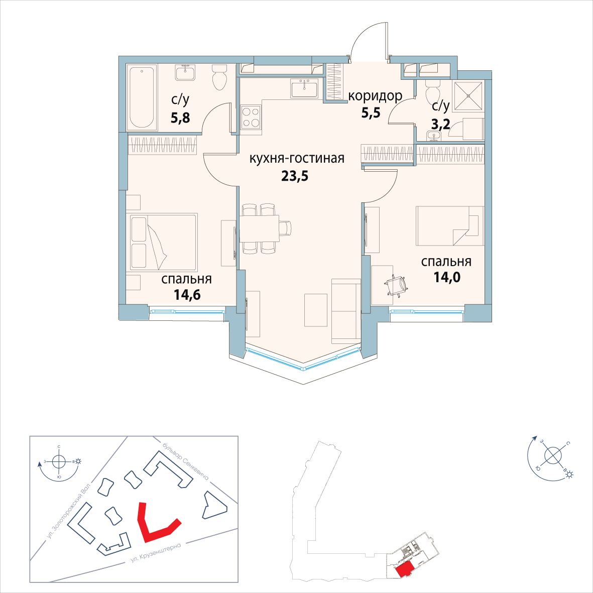 Купить 2к квартиру 83 м² в ЖК Sky Garden