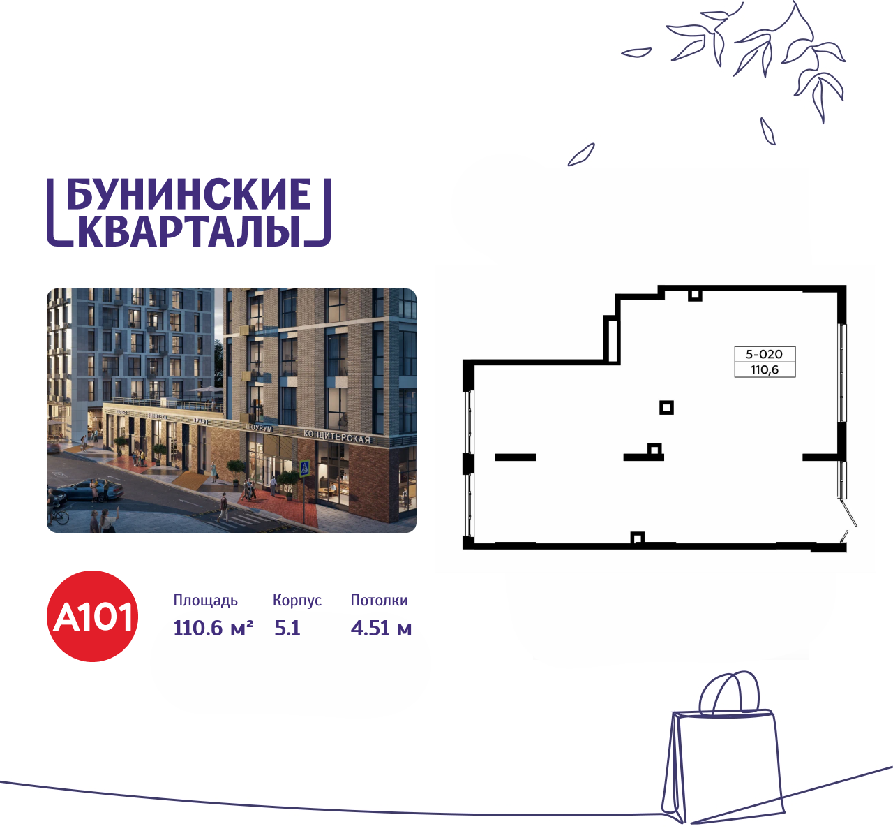 Снять торговое помещение 110 м² в ЖК Бунинские кварталы