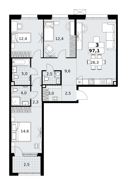 Купить 3к квартиру 93 м² в ЖК Кронштадтский 9