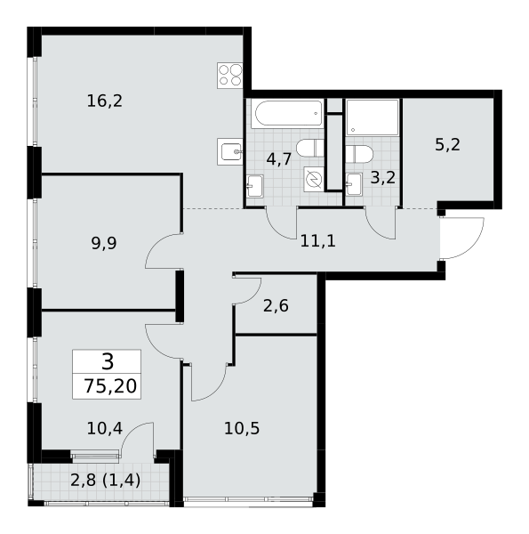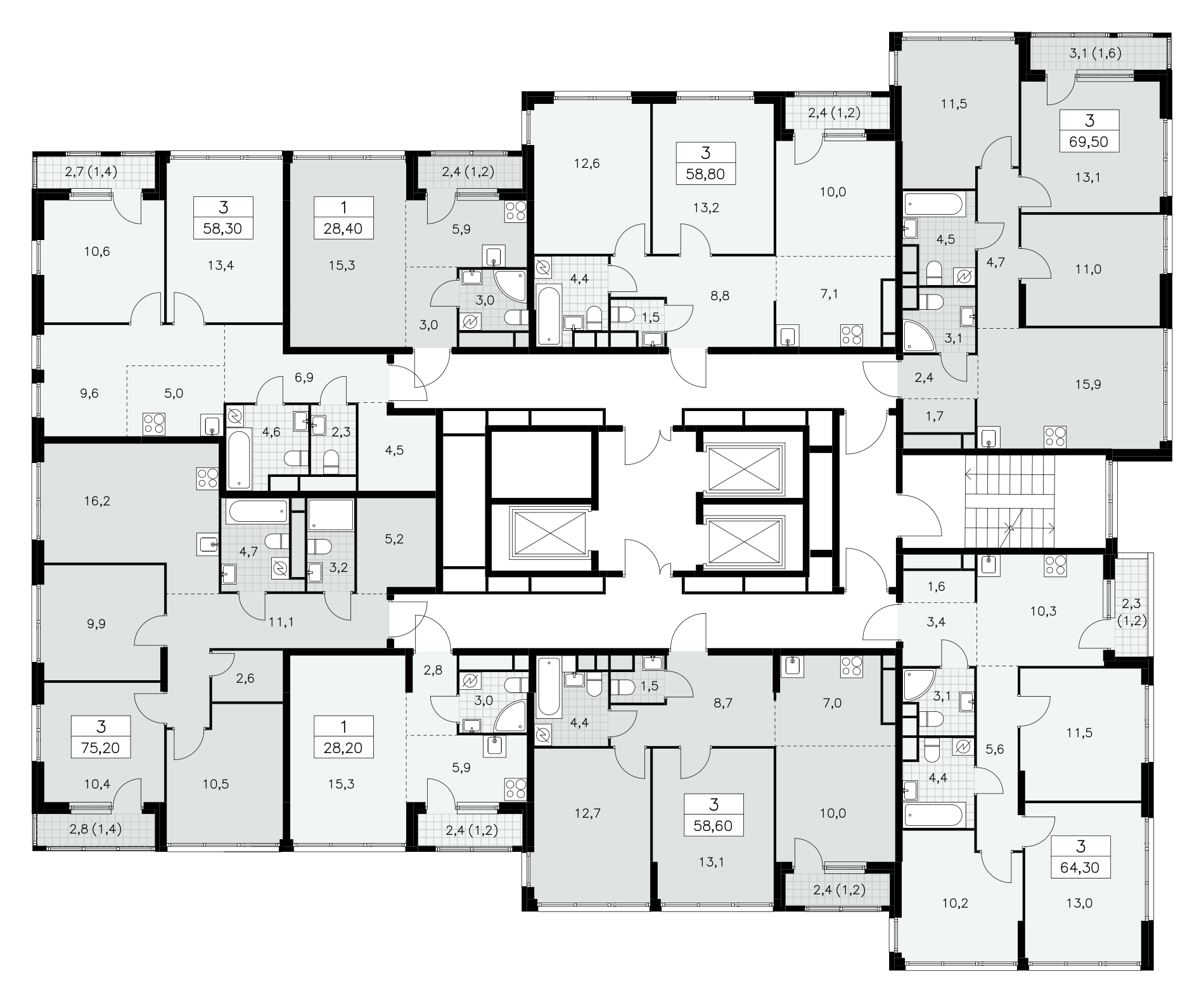 Продаётся 3-комн.квартира площадью 93.40 кв.м на 22 этаже 32 этажного дома (Корпус 1.1.3, секция 3) проекта ПИК Кронштадтский 9. Светлый просторный подъезд на уровне земли, функциональная планировка, большие окна, с отделкой.