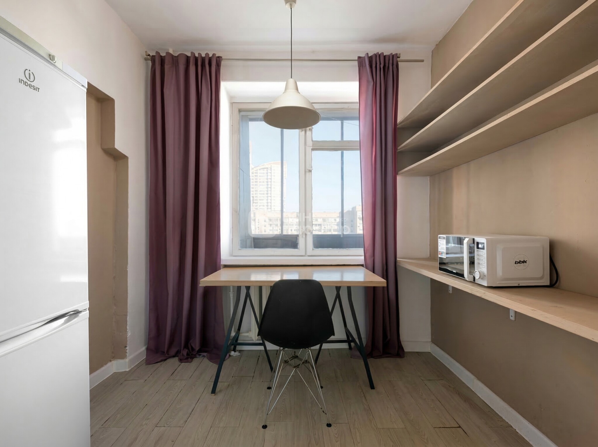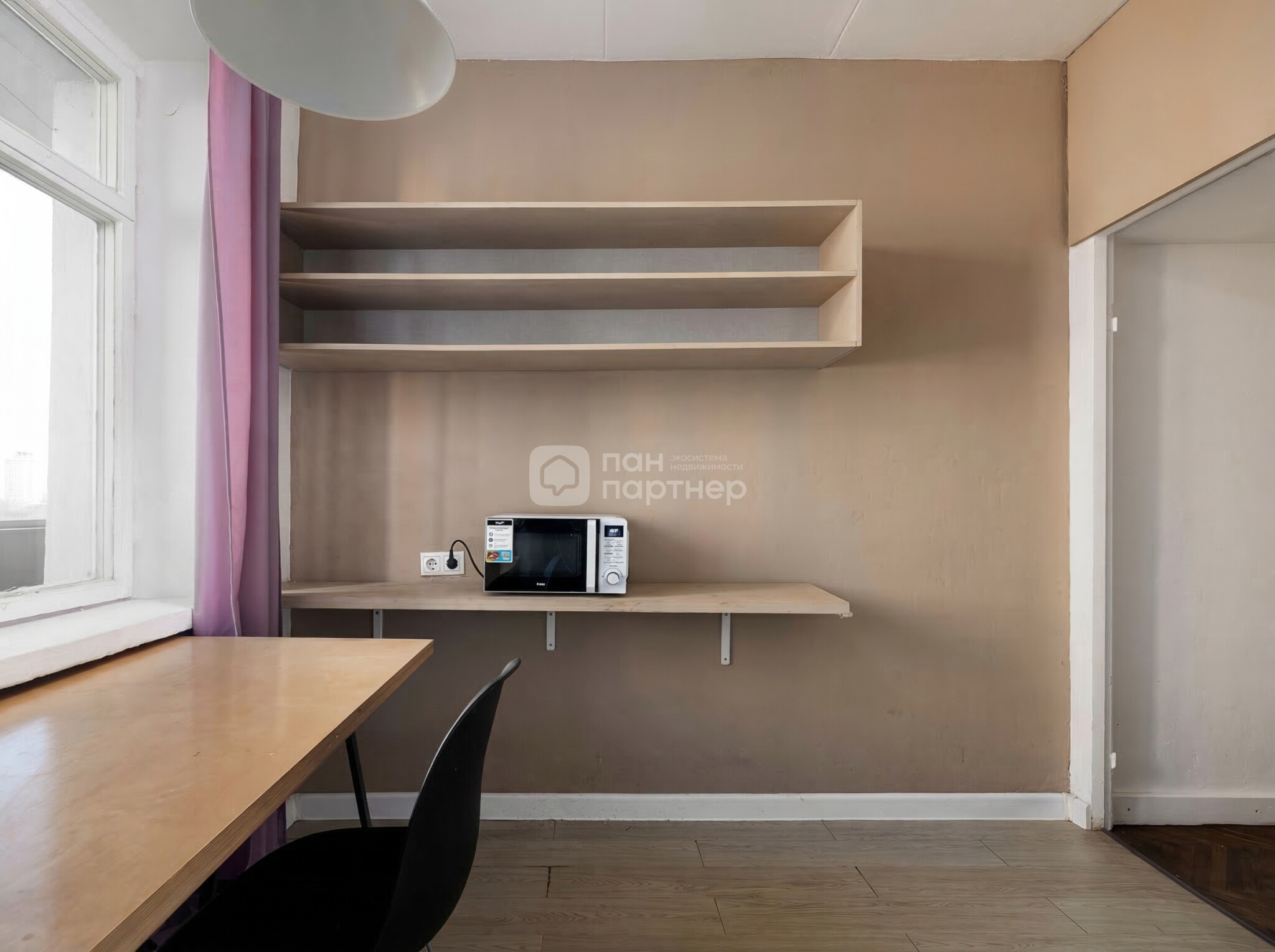 Квартира площадью 36 кв. м нрасположена на 8 этаже 15-этажного дома 1971 года постройки. Жилая площадь составляет 19,1 кв. м, площадь кухни — 8,8 кв. м. Планировка эргономичная, есть просторная лоджия.