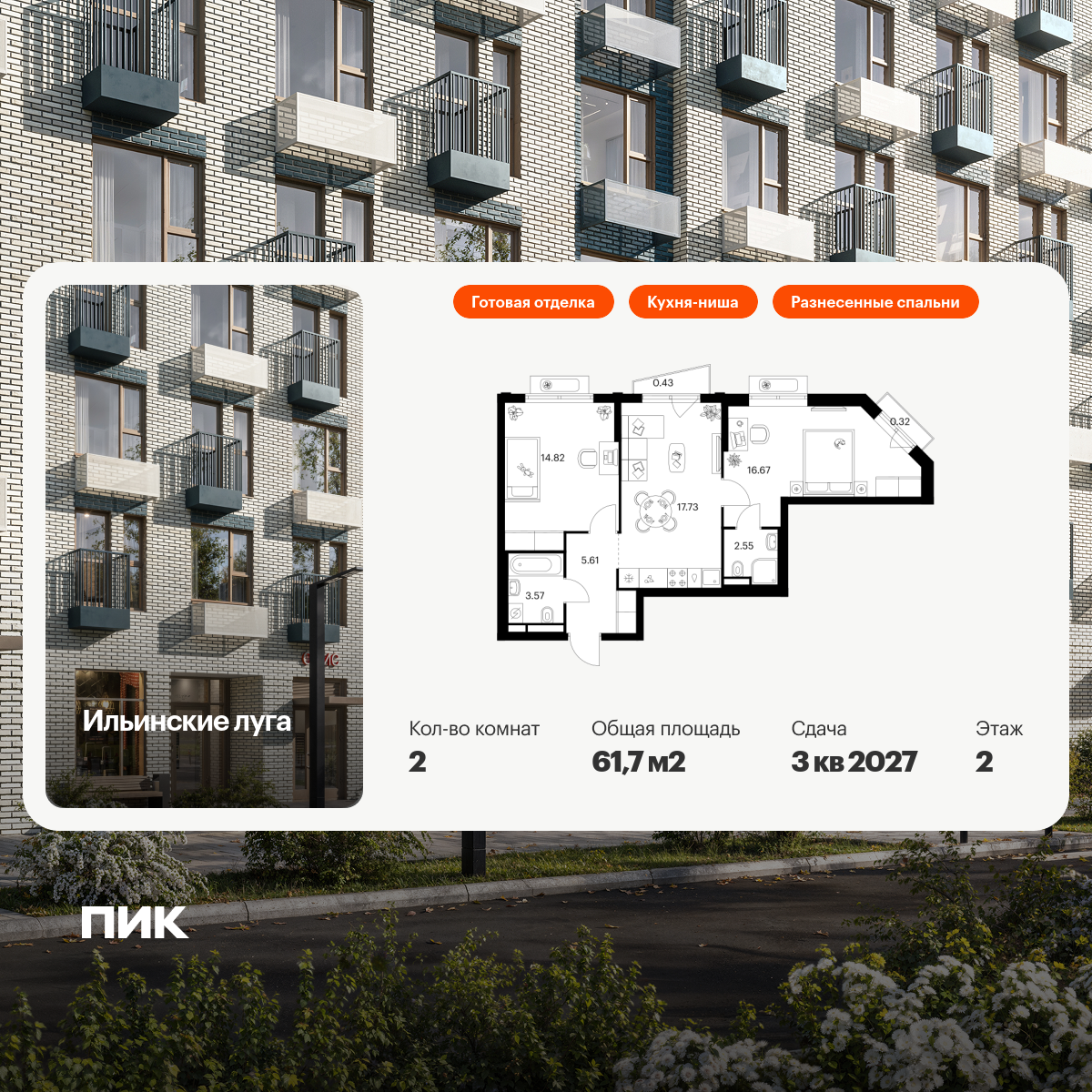 Квартира располагается на 3 этаже 14-этажного панельного дома в ЖК 1-й Ленинградский.