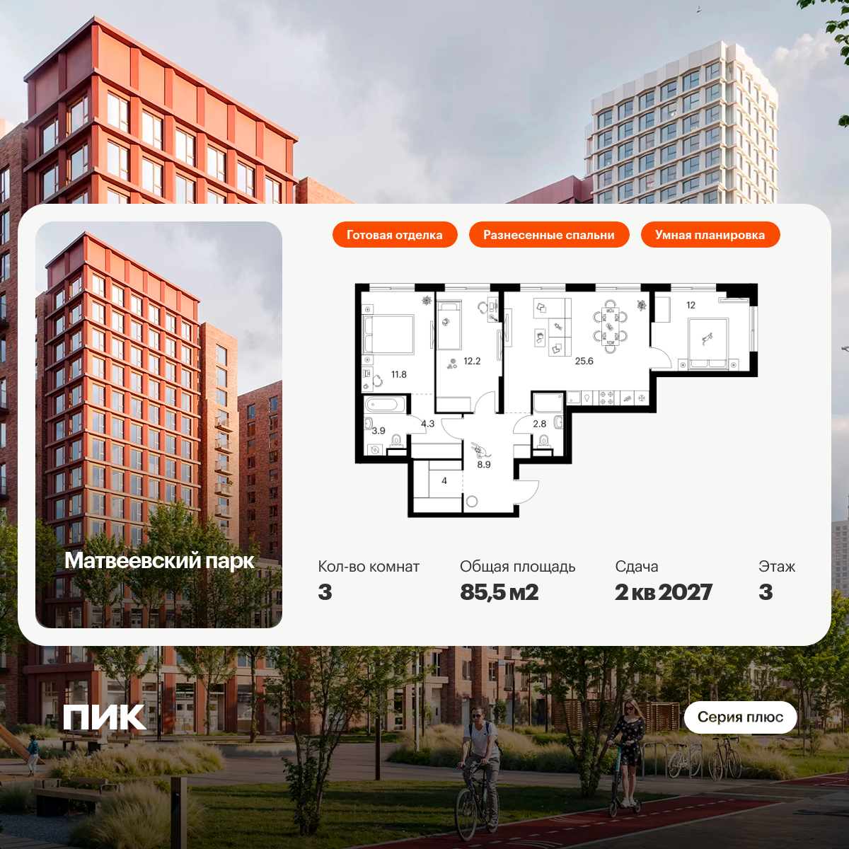 Продается 3-к квартира площадью 80.2 кв.м. на 11-м этаже