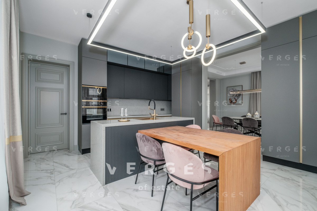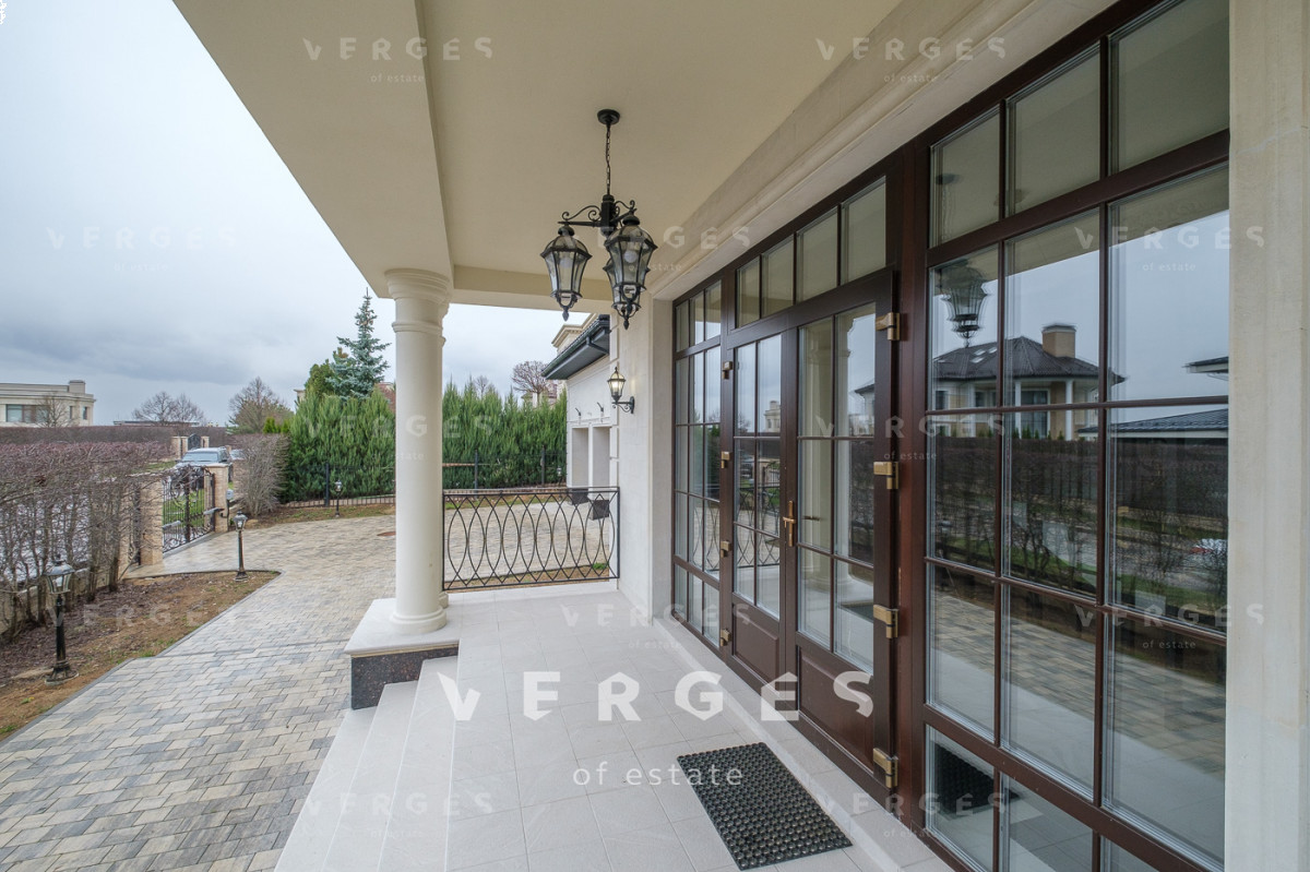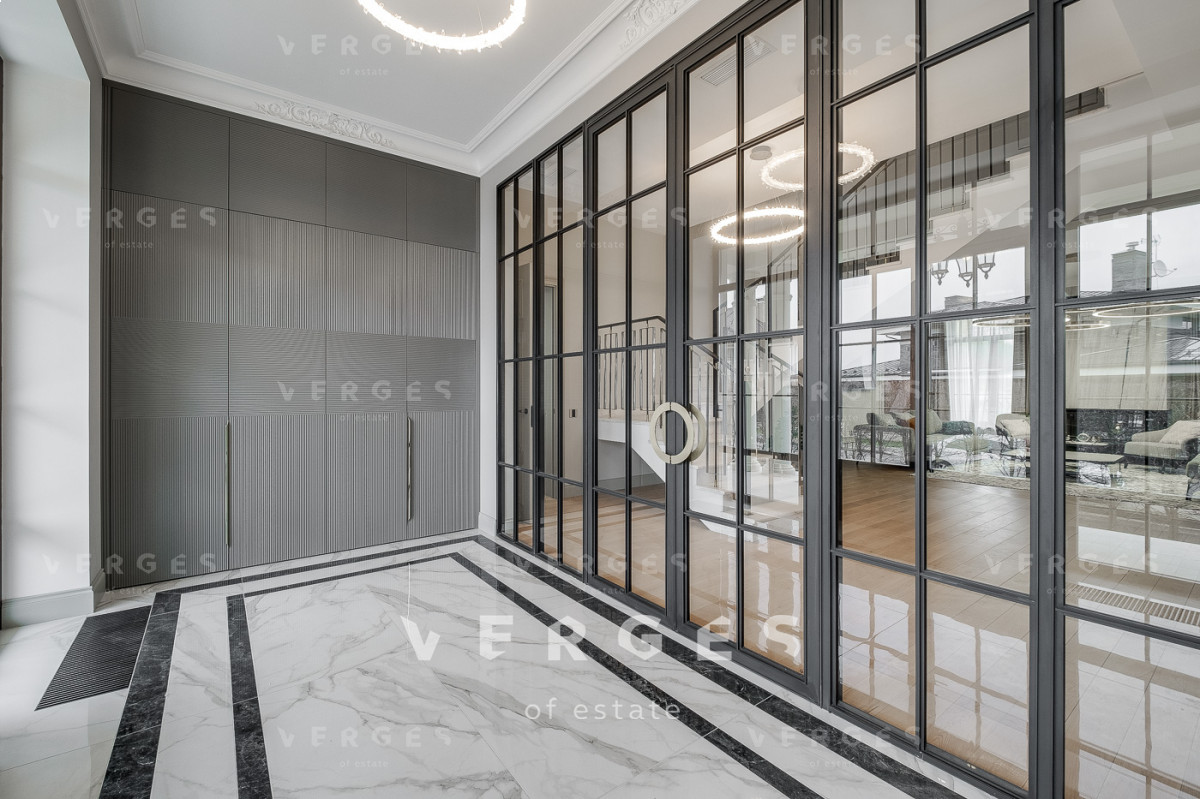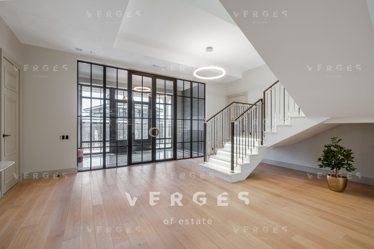 Дом с видом на лес в КП Ренессанс парк — идеальный выбор для вашей семьи. Уютный особняк располагает пятью спальнями, тремя гардеробными и четырьмя ванными комнатами. На первом этаже — гостиная с камином, столовая и кухня. Второй этаж отведен под спальни, гардеробные и ванные. Также есть кабинет и помещение для персонала. Под домом — гараж. Участок в 17 соток окружен лесом, что дарит свежий воздух и близость к природе. Дом удобно расположен, все готово к заселению.