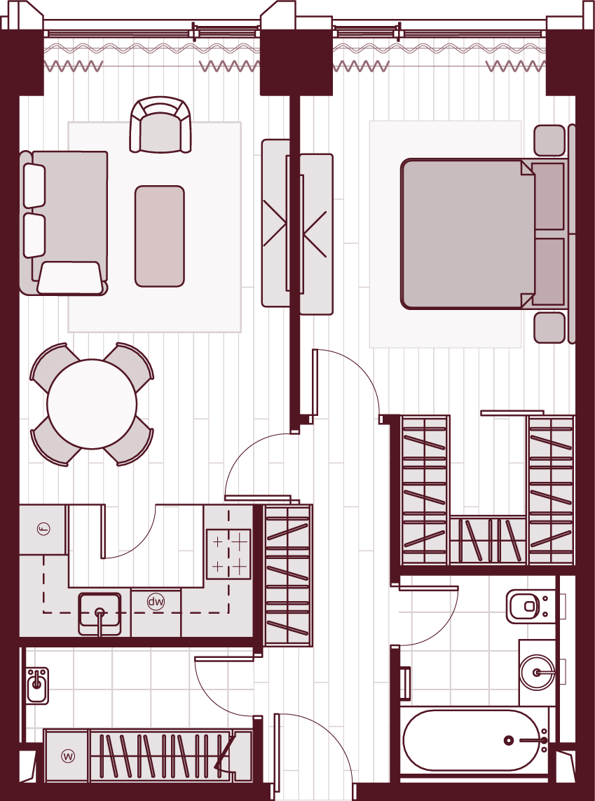 - Мастер-зона с санузлом и гардеробной. Всё для вашего комфорта и удобства, включая личный санузел и гардероб.