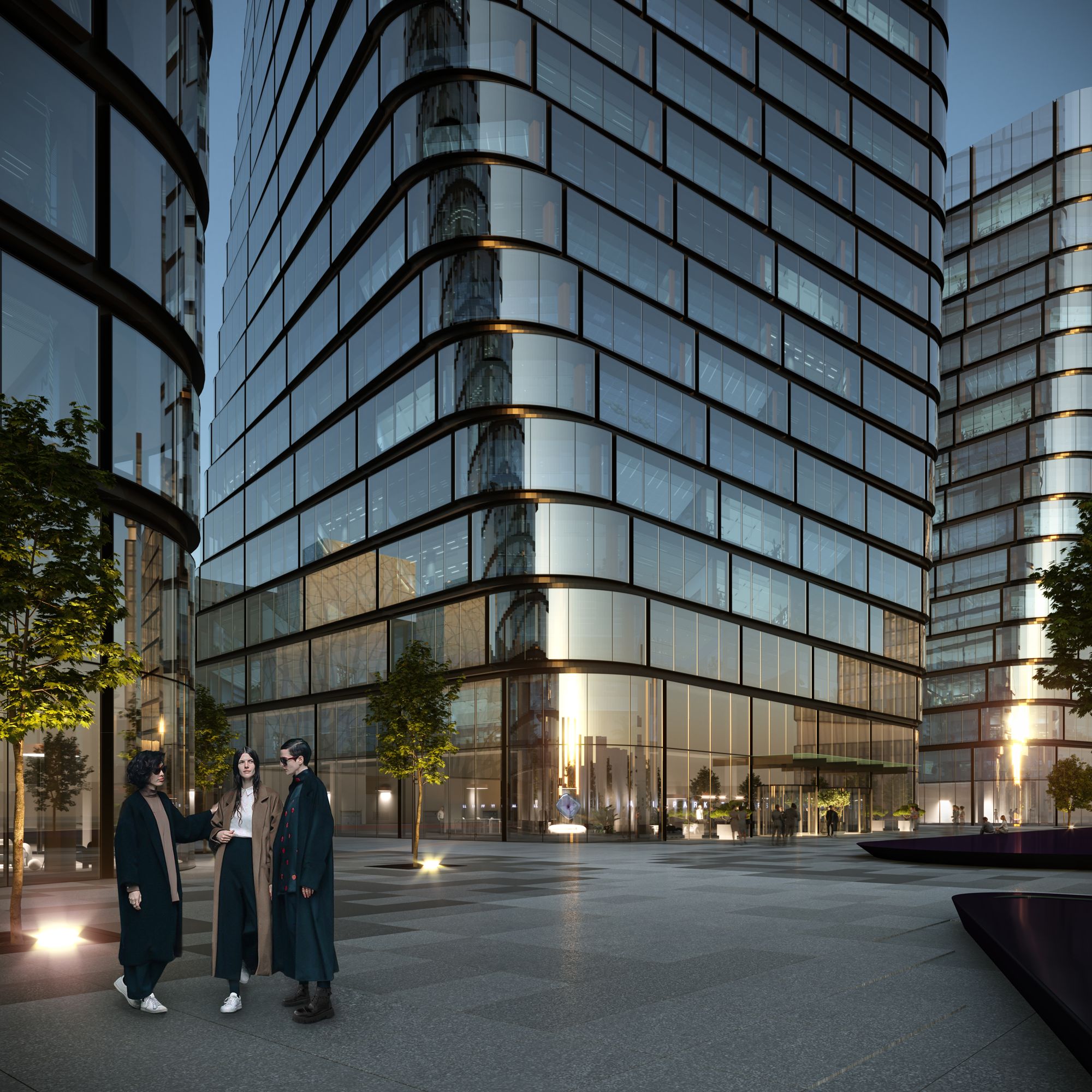 • Угловые блоки: Офисы с молированным панорамным остеклением и обзором 270 градусов.
