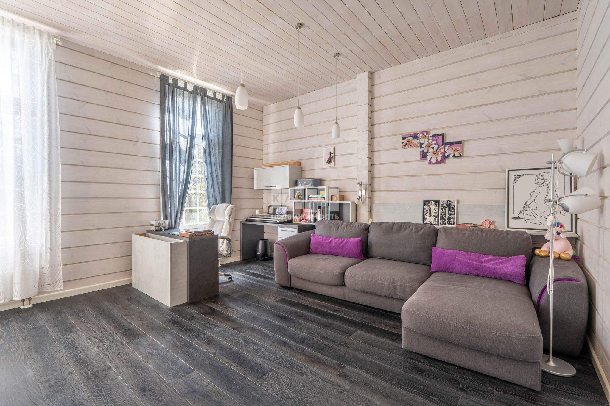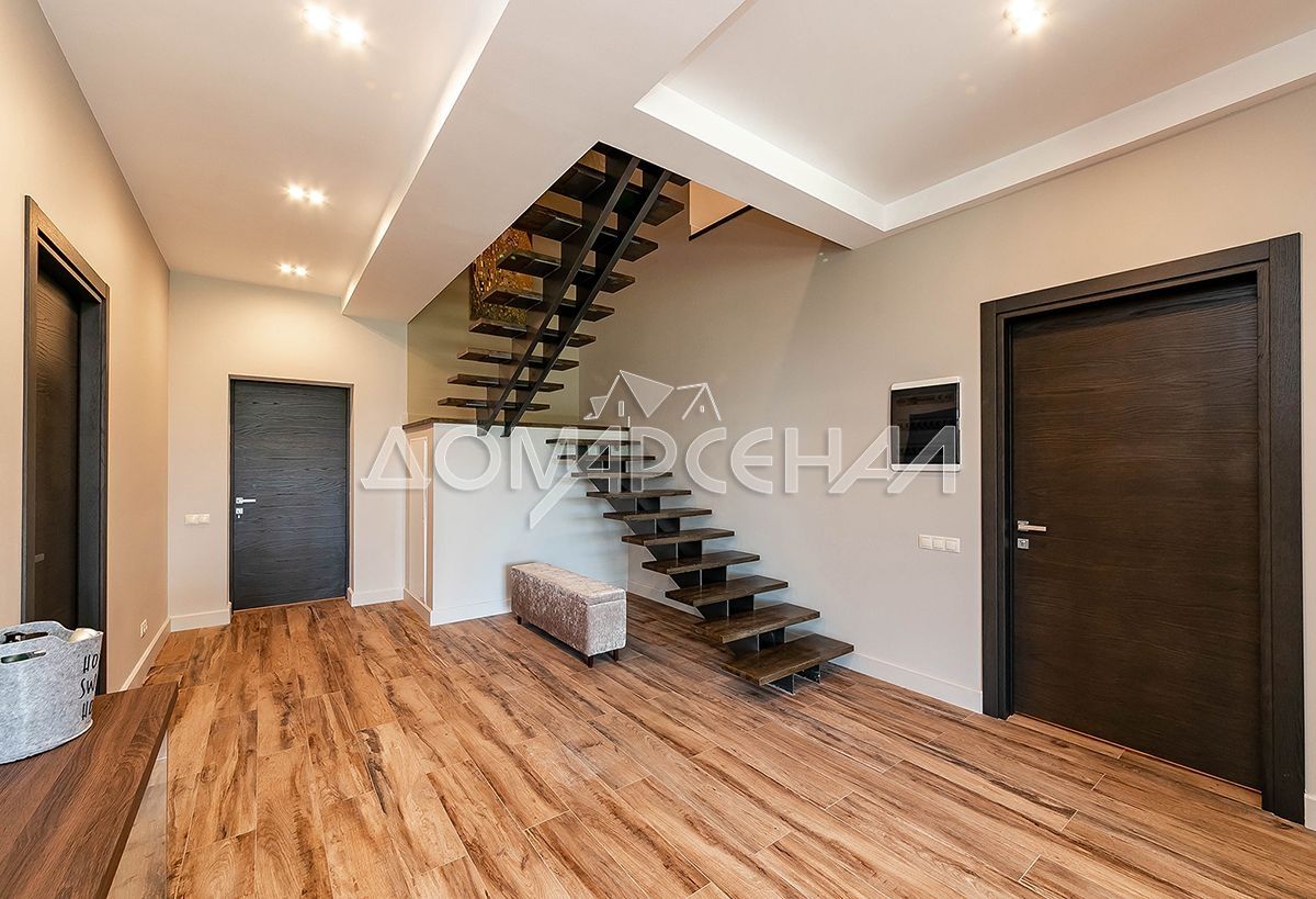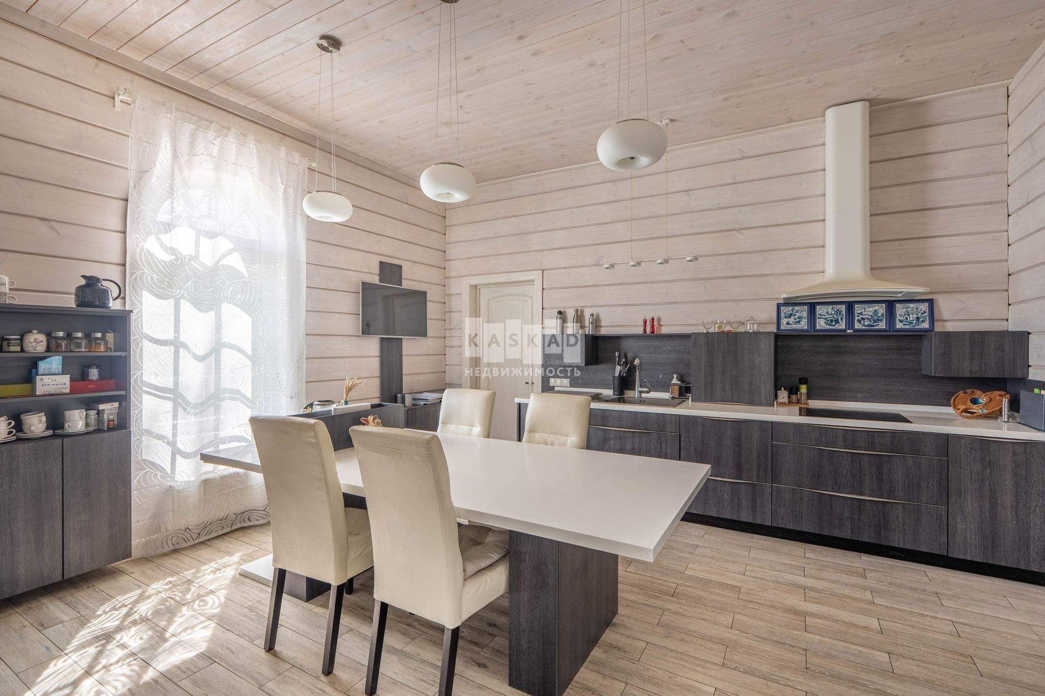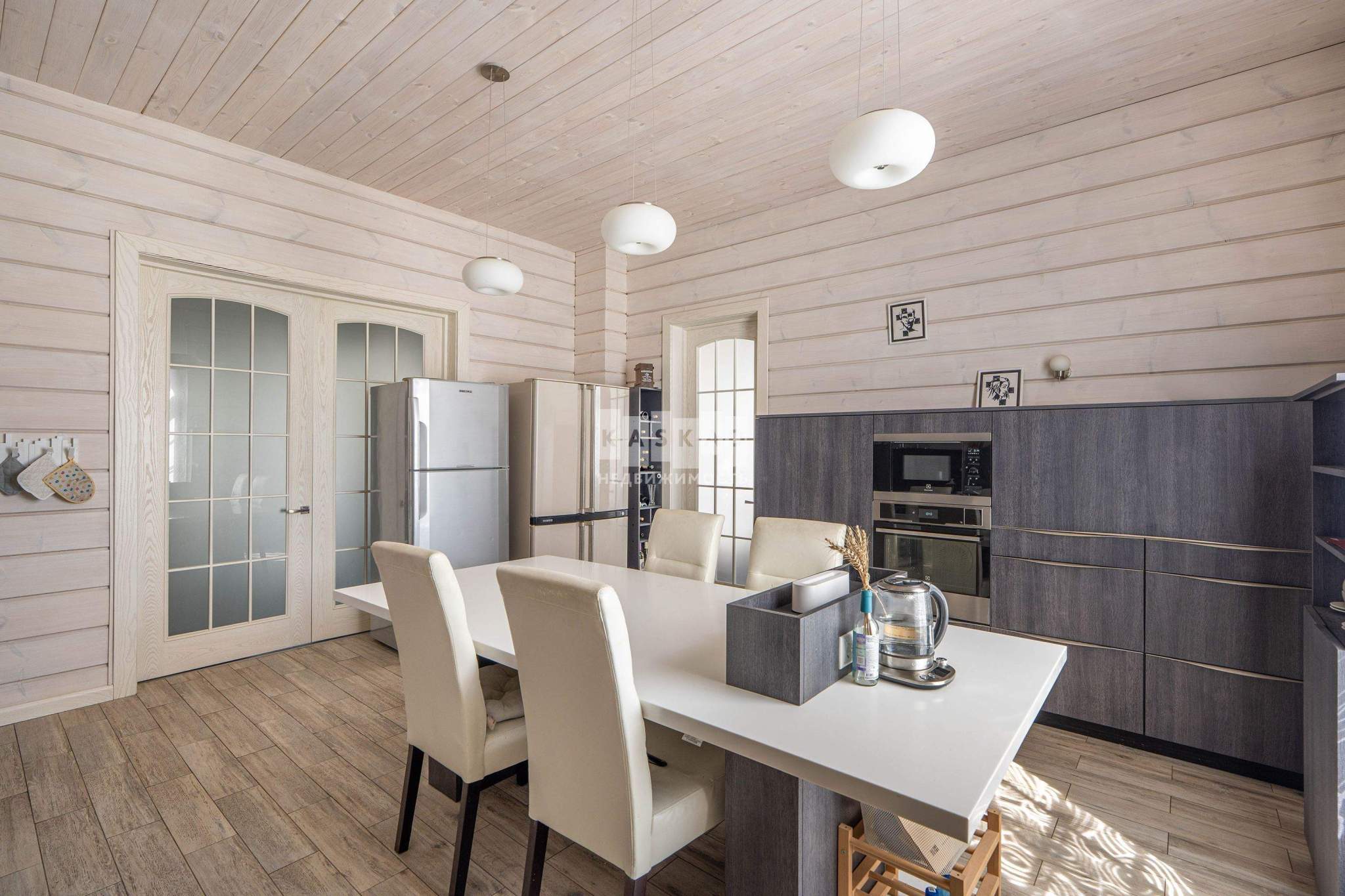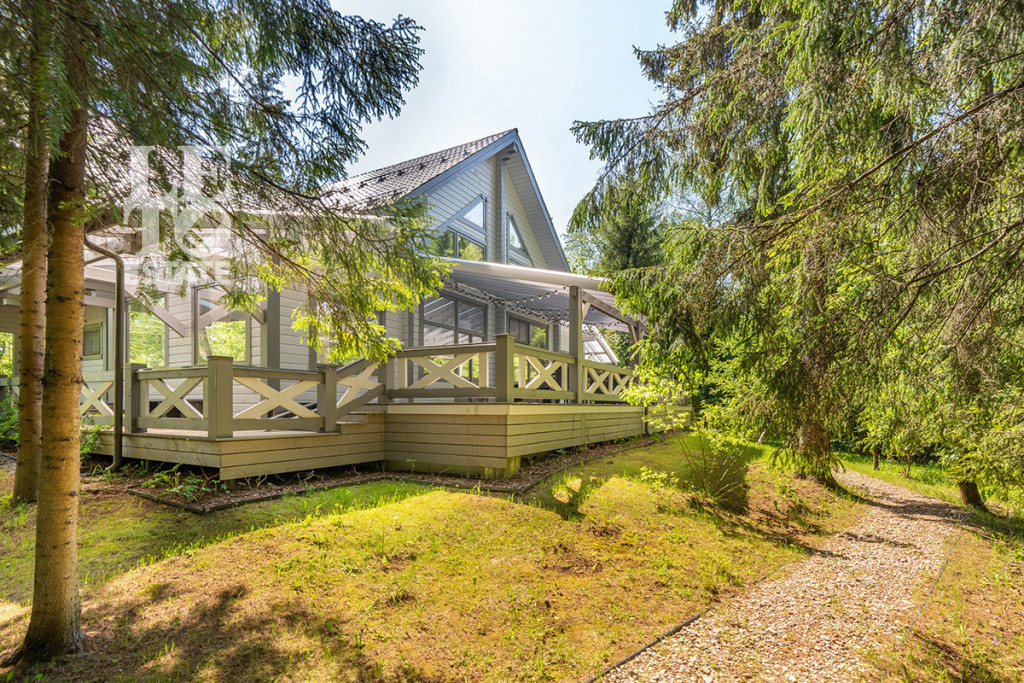 Этот стильный и современный дом площадью 400 м построен из клееного бруса, что обеспечивает экологичность и комфортный микроклимат. Светлая цветовая гамма интерьера создает ощущение простора и легкости.