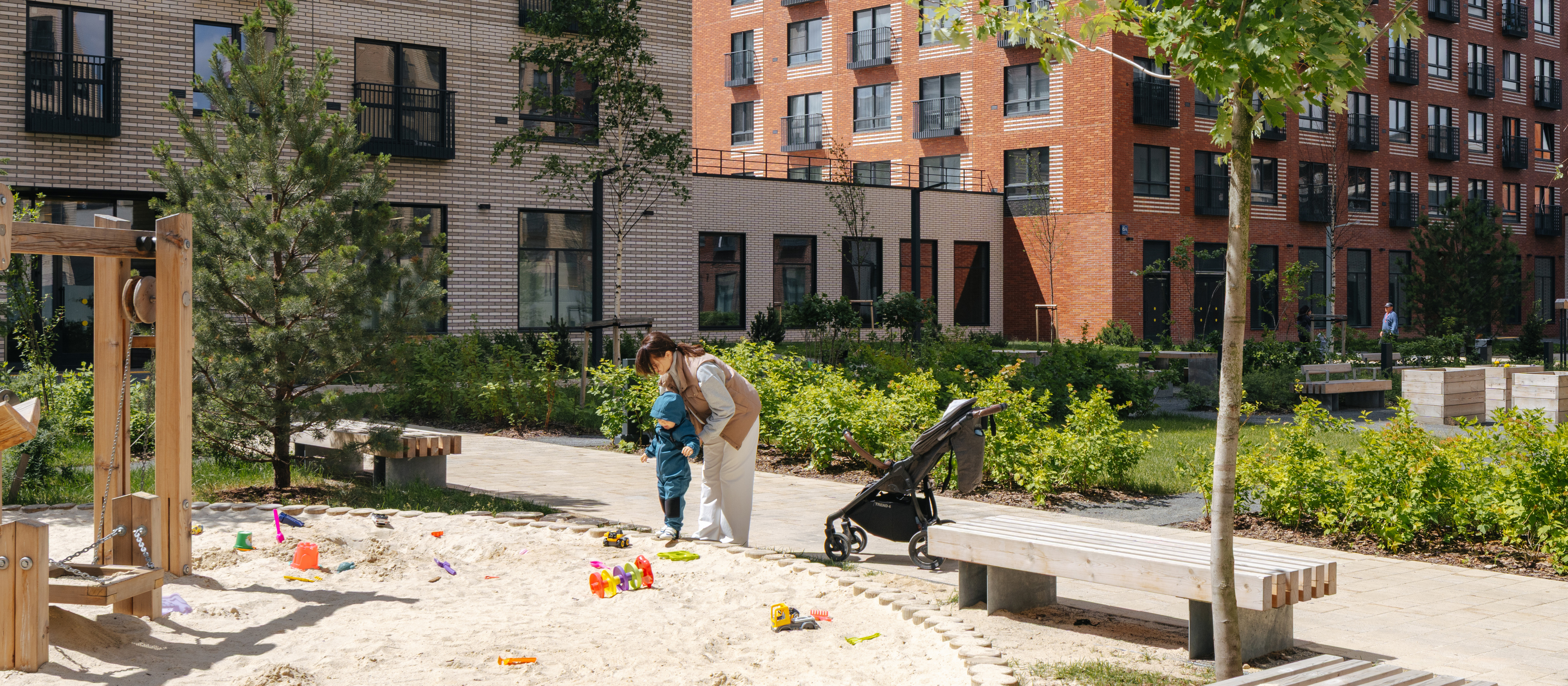 На первых этажах откроются полезные сервисы, магазины и кафе, куда можно будет спуститься за кофе в домашних тапочках. Уникальную архитектуру домов подчеркнёт подсветка фасадов. В светлых лобби, оформленных по индивидуальному дизайн-проекту, предусмотрены удобные зоны ожидания, гостевая туалетная комната и лапомойки для собак, чтобы питомцы попадали в квартиру уже чистыми.