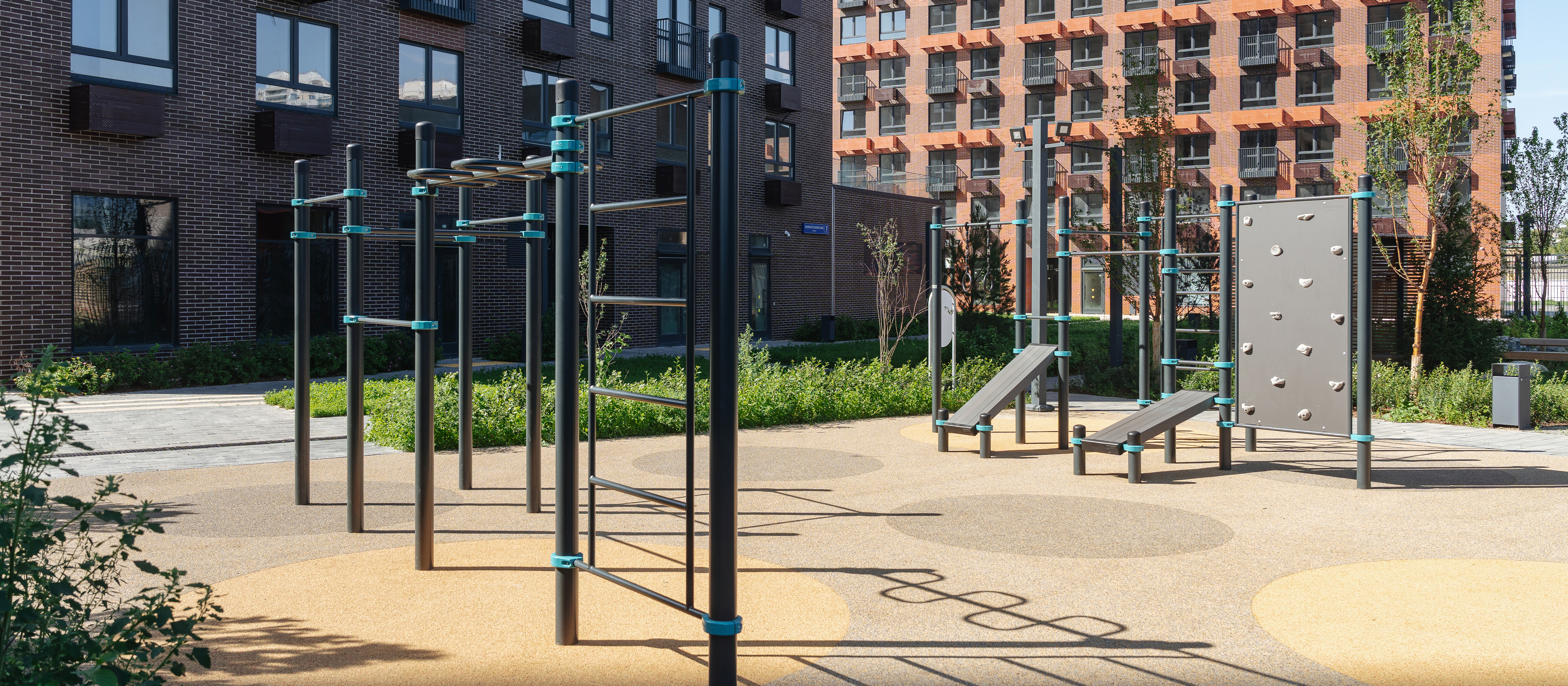 Небольшой и уютный проект включает четыре корпуса переменной высоты. Благородные фасады в природных оттенках — охре, терракотовом и песочном — надолго сохранят стильный и современный облик.