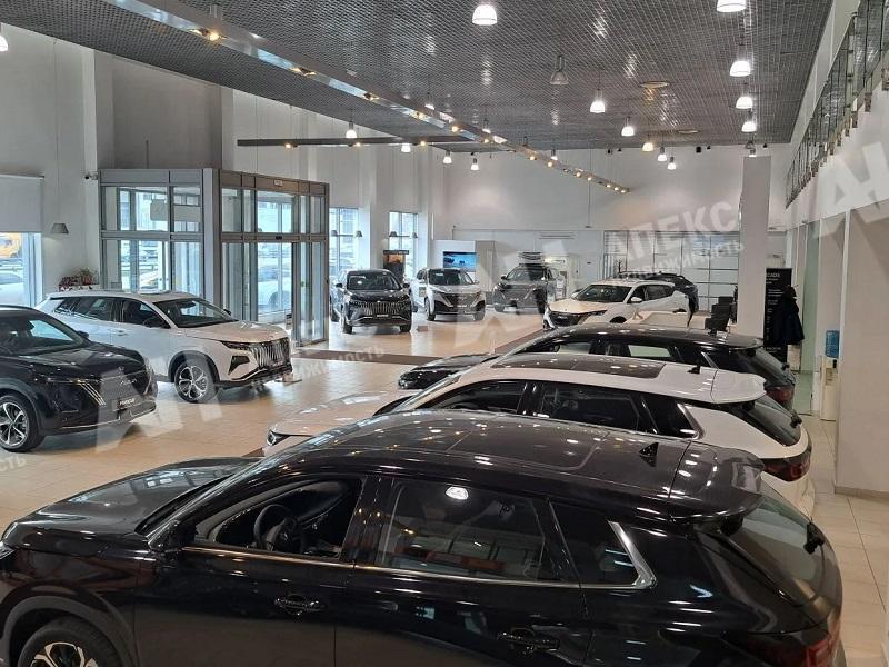 В здании предусмотрен просторный демонстрационный зал с панорамным остеклением и высокими потолками. Сервисная зона включает оборудованный цех с профессиональным освещением и зонами приемки. Инфраструктура дополнена клиентской зоной, офисными помещениями для персонала и складом запчастей. На территории имеется собственная просторная стоянка для выставочных авто и транспорта клиентов.
