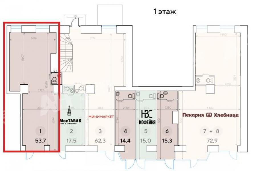 Лот №1068547 Сдается в аренду торговое помещение — 53.7 м², м. Динамо