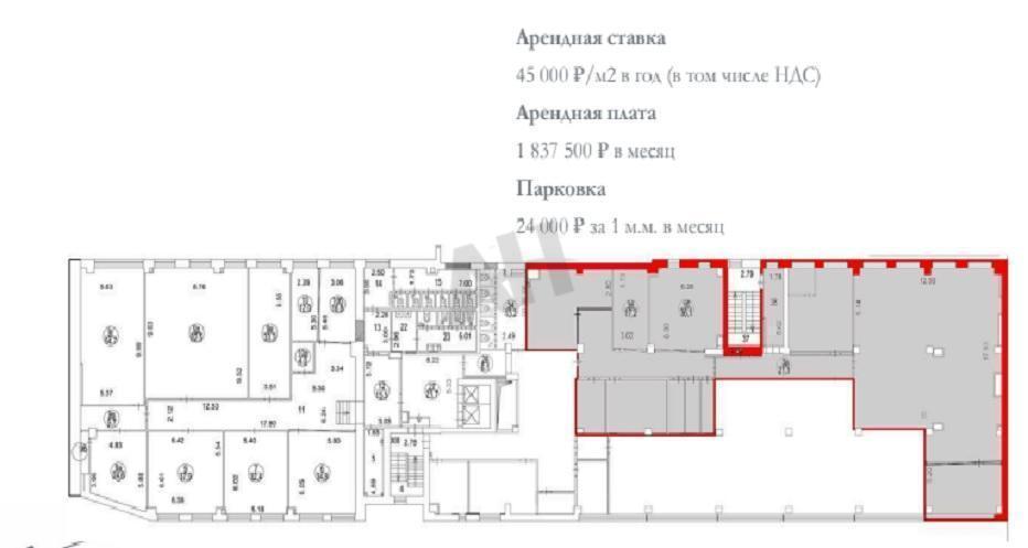 Лот №1068518 Аренда площади свободного назначения 900 м2 в бизнес-центре класса В+ "Авион".