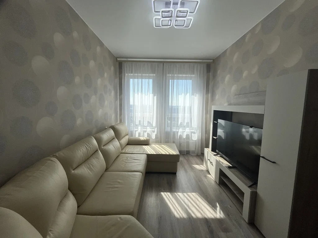 Кухня-гостиная: кухонный гарнитур, стол, 4 стула, новый холодильник, новая варочная панель, новый духовой шкаф, раскладной диван, тумба под телевизор, телевизор, электрический чайник, стиральная машина, кондиционер;