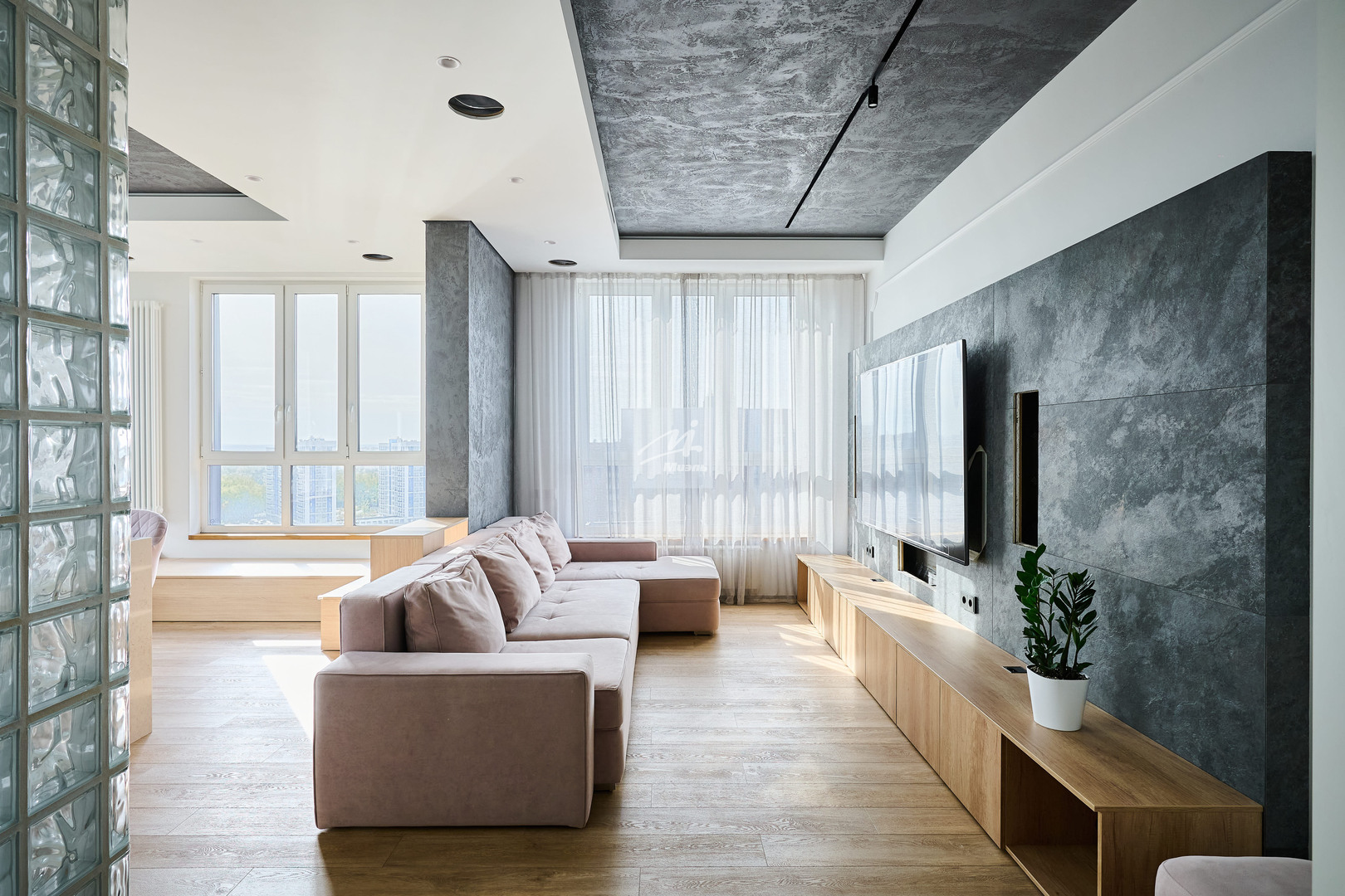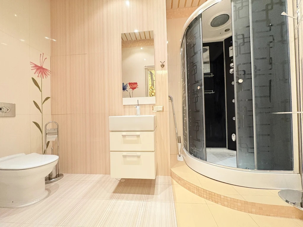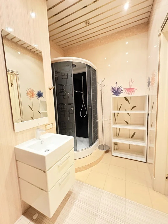 Два санузла, один из которых более 15кв.м. Гардеробная. Зал смежный с кухней, спальня, кабинет смежный со второй спальней. Две большие лоджии - террасы. Площадь квартиры указана без учета площадей лоджий, по ЕГРН.