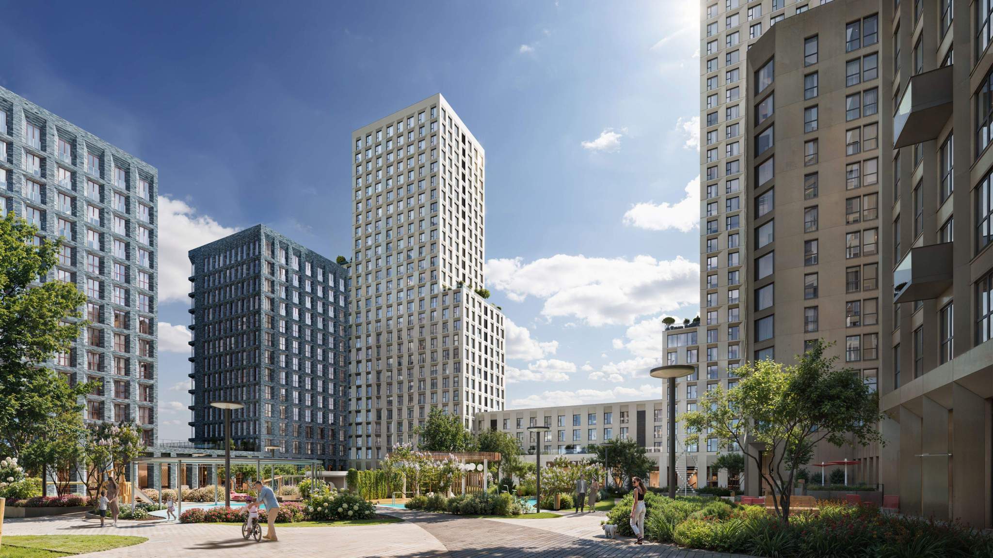 «Среда на Лобачевского» - новый квартал в парадном стиле старой Москвы. Благодаря разноэтажной застройке во дворе комплекса будет много света и воздуха, без ощущения замкнутого пространства. Во дворе лаунж-зоны для медитации и работы, площадки для игр и кинопоказов, а на первых этажах - кофейни и магазины.