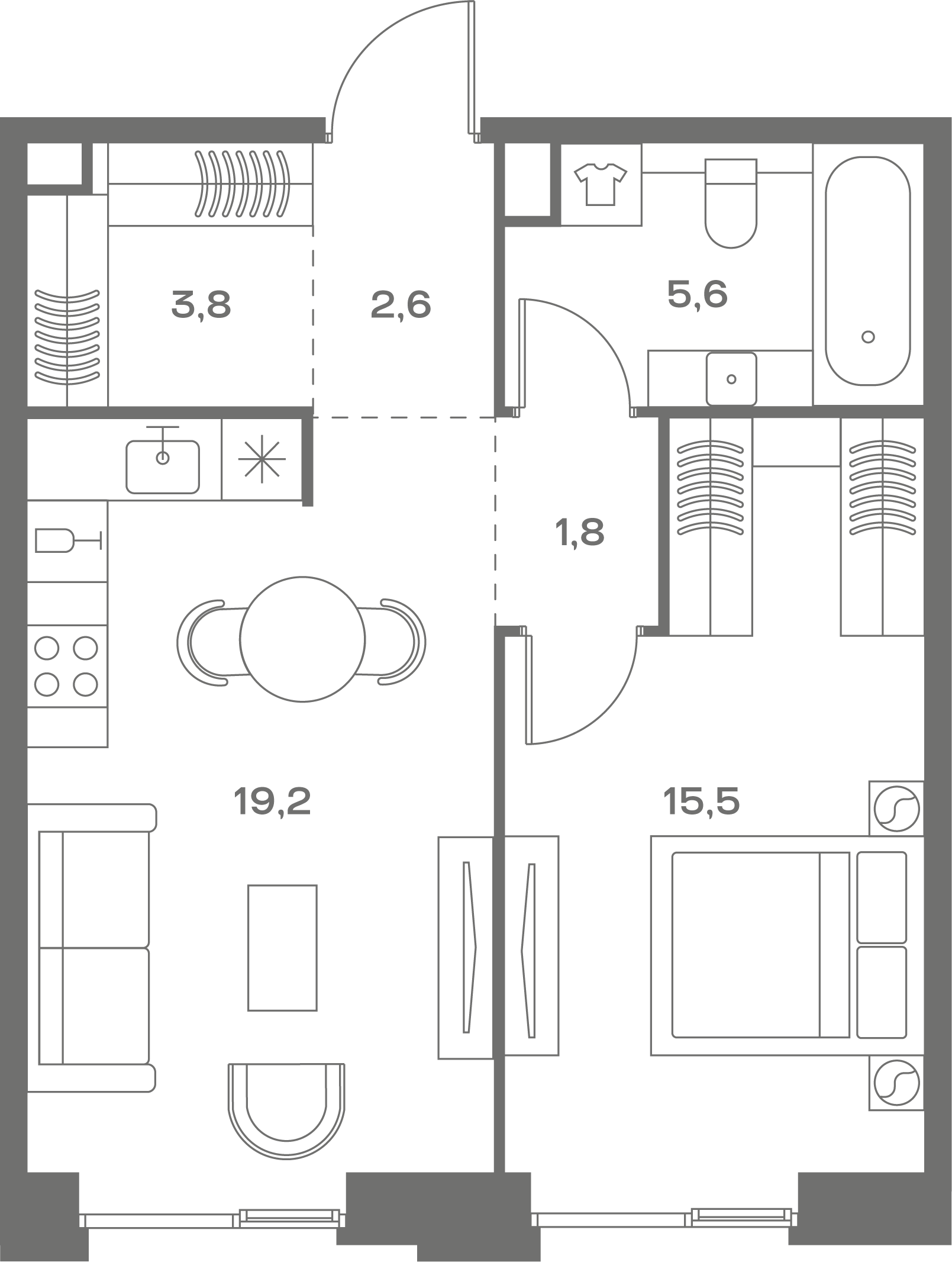 В продаже функциональная и светлая односпальная квартира с кухней-гостиной и одной спальней для реализации любого дизайн-решения, идеально подходящая молодым парам и небольшим семьям. Квартира расположена в камерном низкоэтажном жилом комплексе бизнес+ в одной станции от кольца.