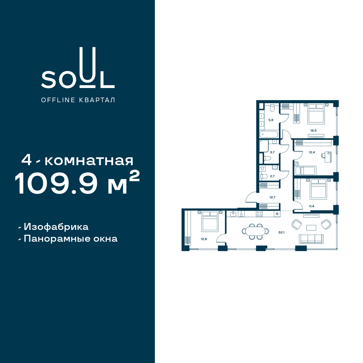 Купить 5к квартиру 135 м² в ЖК "Дзен-кварталы"