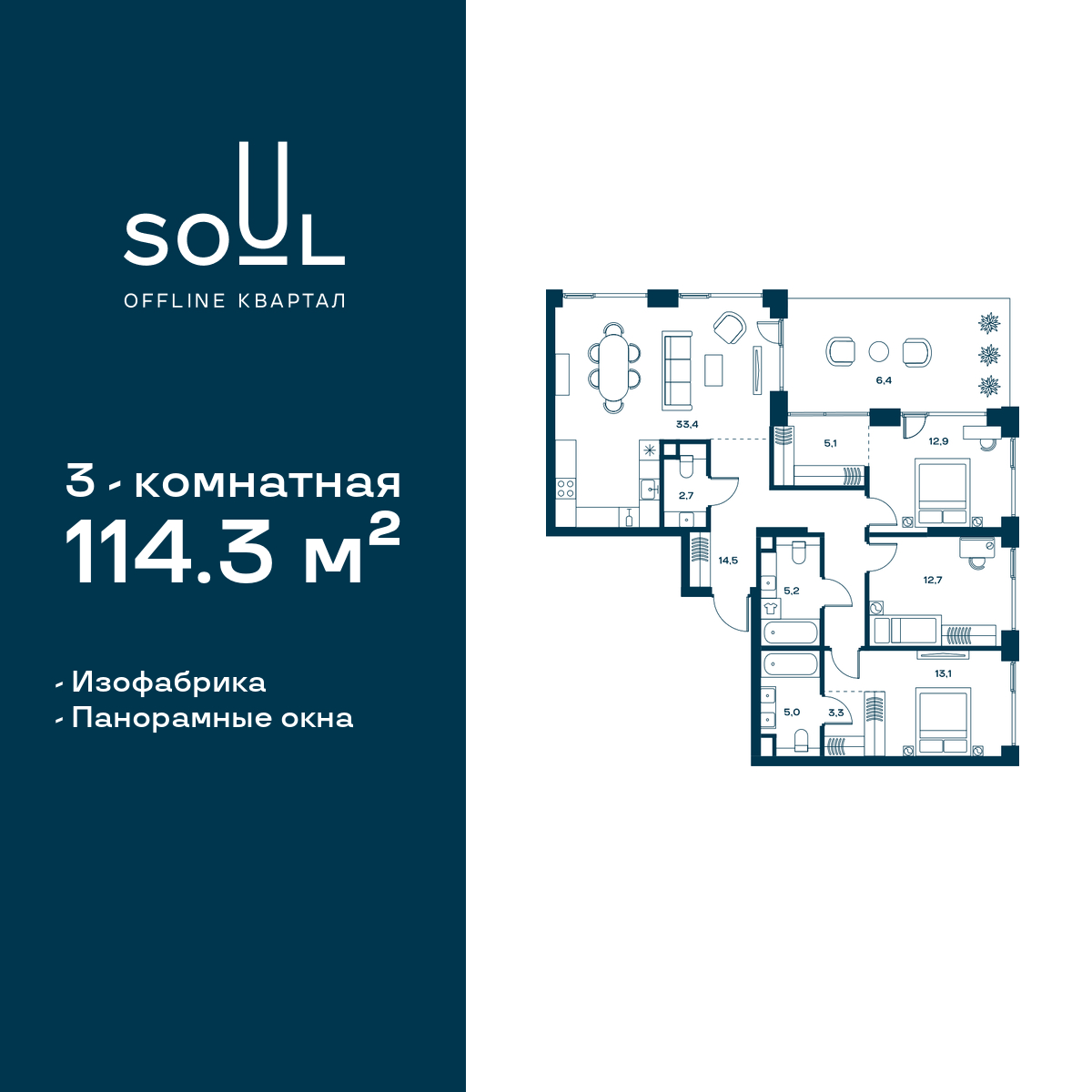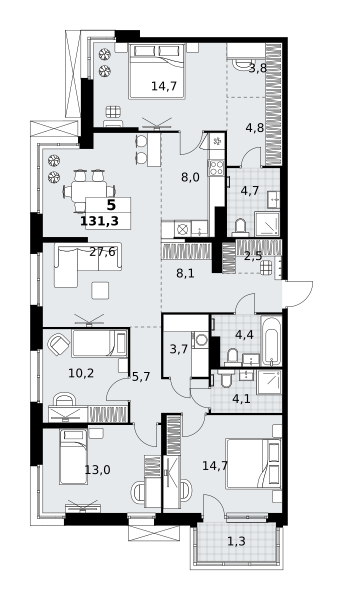 Купить 5к квартиру 135 м² в ЖК "Дзен-кварталы"