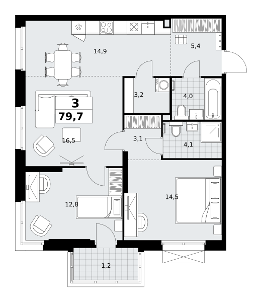 Четырехкомнатная квартира от застройщика с отделкой в ЖК "Деснаречье" на 2 этаже. Общая площадь: 84.5 кв.м. Наличие террасы в квартире дает возможность для создания зон отдыха в кругу семьи и друзей. Высота потолков 2.95 м.