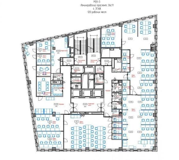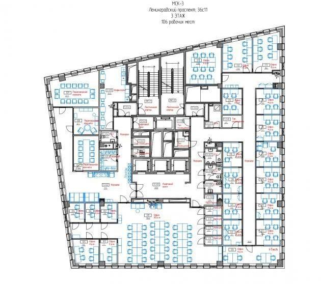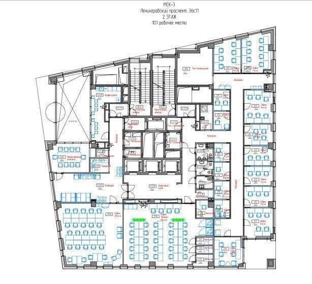 В наличии офисные блоки. Инфраструктура включает в себя кухню, переговорные комнаты, принт-зону, телефонные кабины и комфортабельные общие зоны для отдыха.