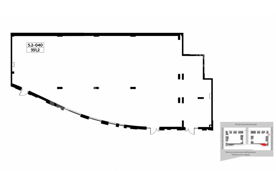 Площадь 351,2 м² - оптимальный метраж для ресторана, супермаркета, медцентра или зонирования под нескольких арендаторов.