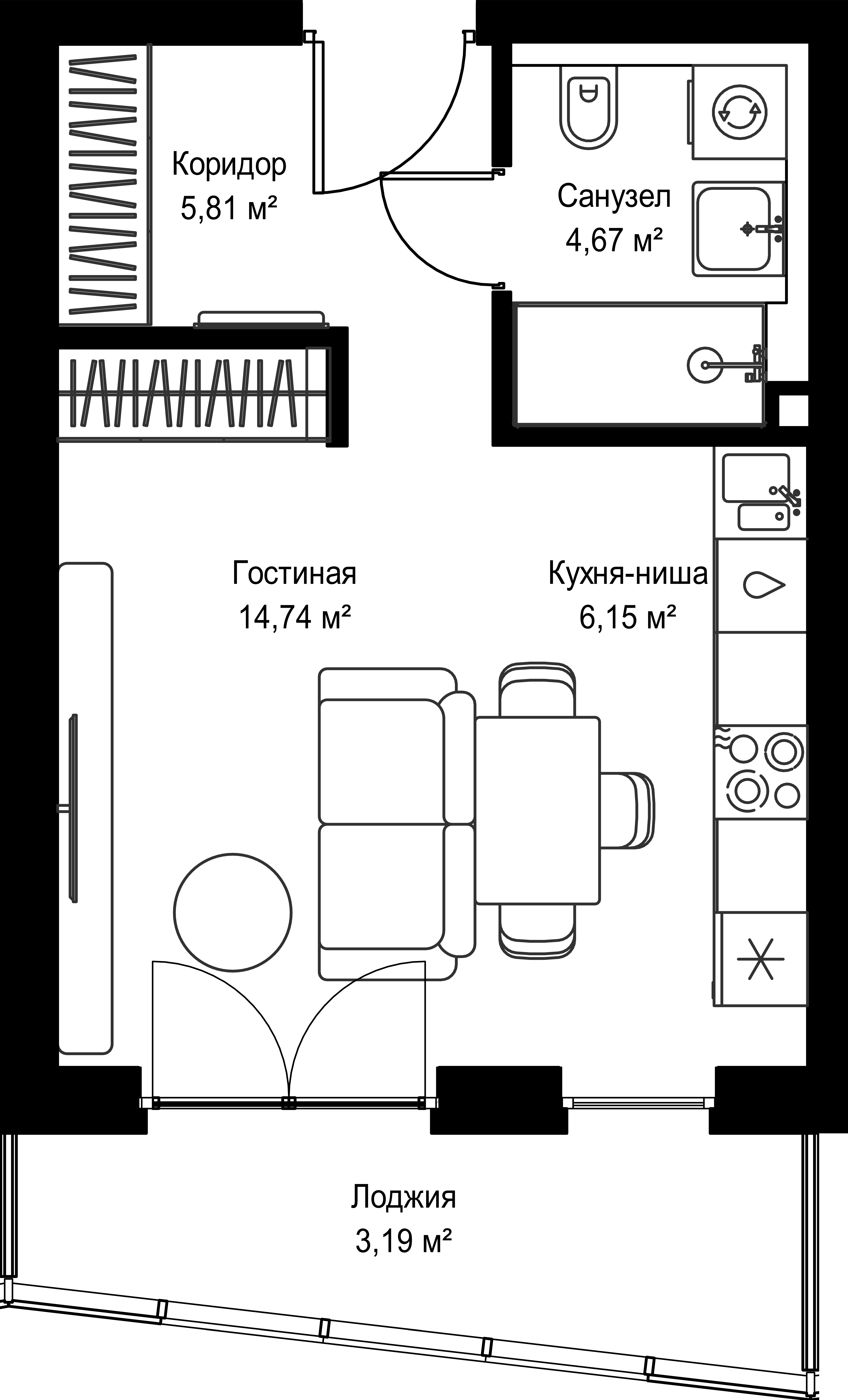 Эта квартира предлагается без отделки. Будут установлены стеклопакеты с повышенной тепло- и шумоизоляцией, в квартиру заведены все коммуникации. Вы сможете в полном объеме реализовать ваши идеи обустройства вашего комфортного дома. Имеется ниша под гардероб.