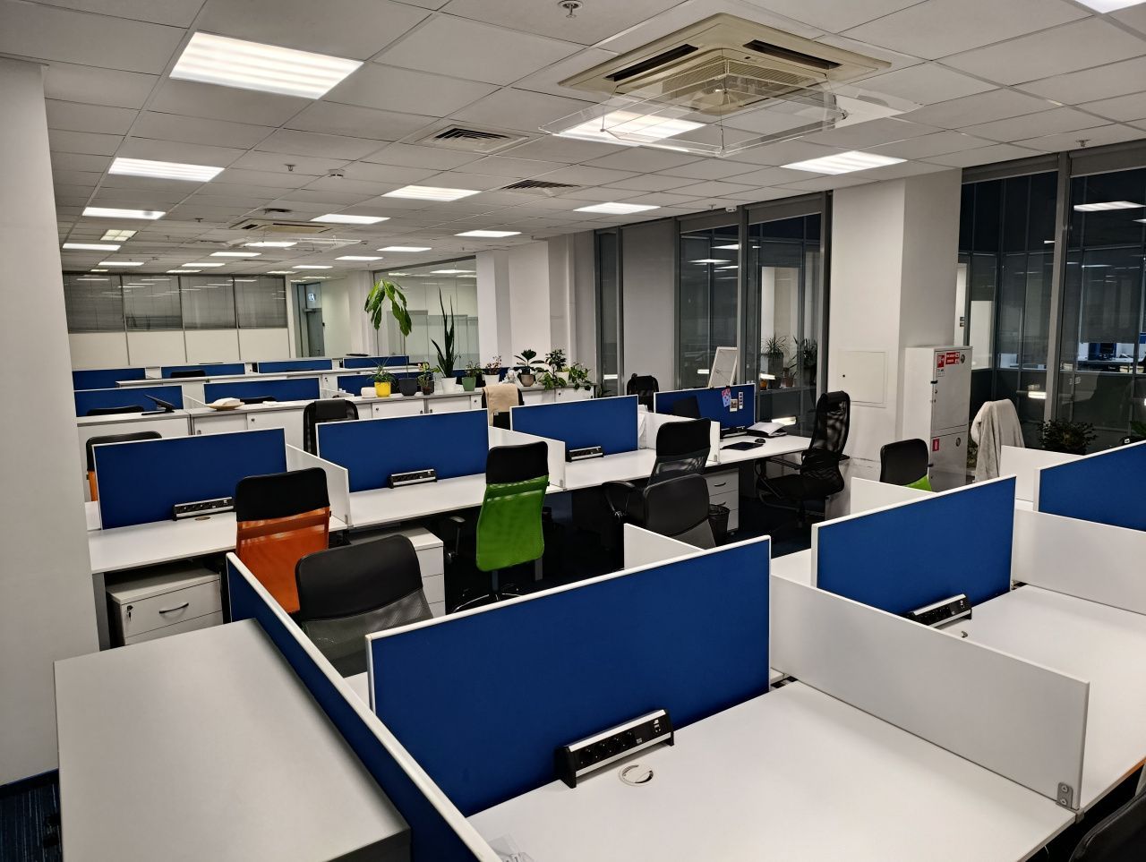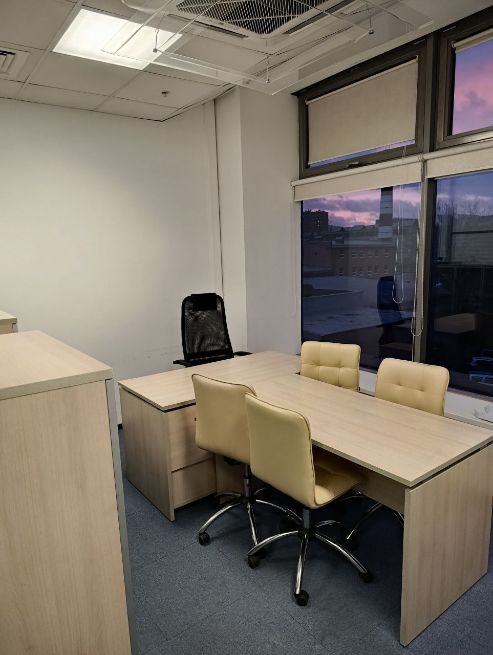 Пол - ковровая плитка, стены окрашены, потолок Армстронг. Предлагается с мебелью – столы в открытых зонах с выполненной разводкой слаботочки, без кресел. В офисе есть санузел и кухня.