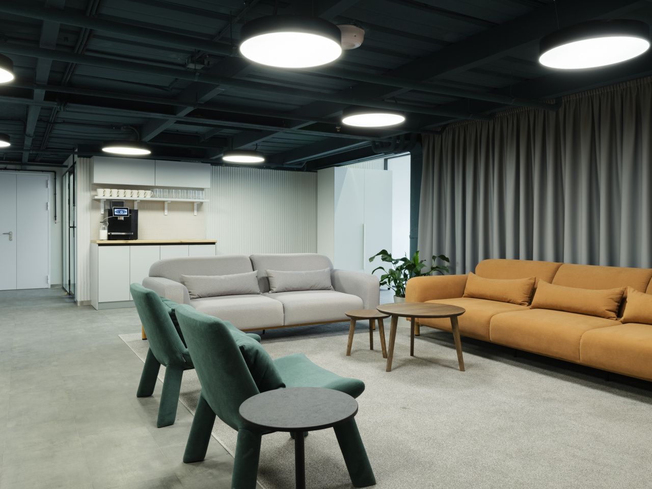 Функциональная планировка, есть мягкая зона отдыха, переговорные разной вместимости, оборудованная кухня с обеденной зоной, санузлы.