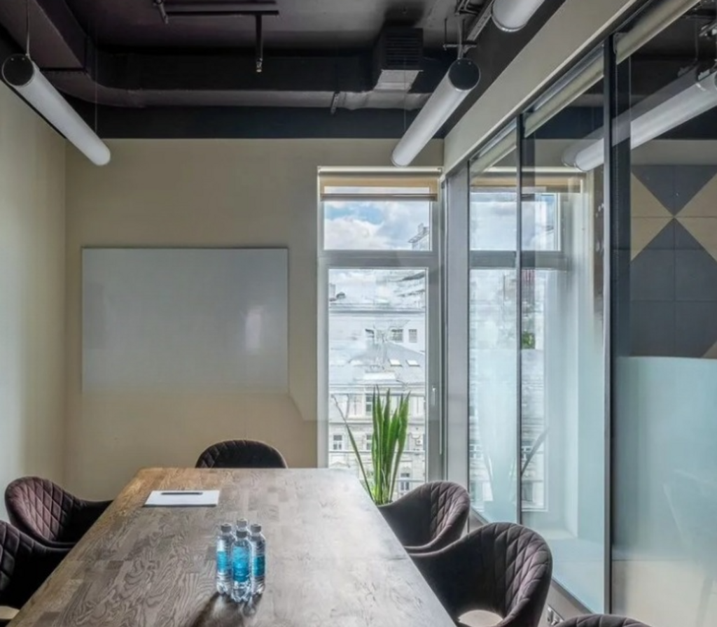 Функциональная планировка, есть мягкая зона отдыха, переговорные разной вместимости, оборудованная кухня с обеденной зоной, санузлы.