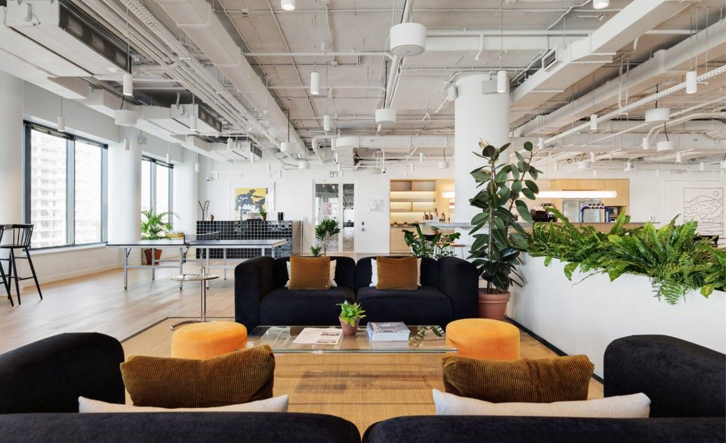 Офис оснащен современной мебелью для различных функциональных зон - уютные лаундж-зоны, изолированные переговорные кабинки, стойка ресепшн во входной группе, а также практичные системы хранения.