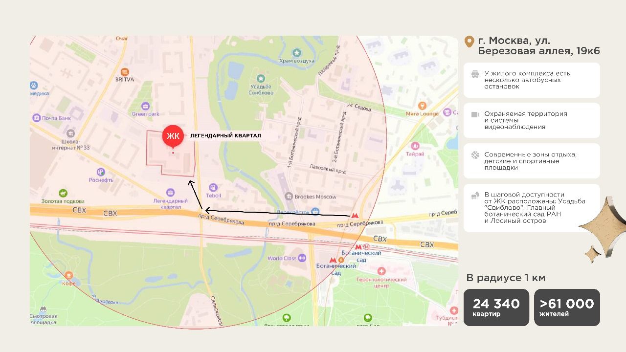 Легендарный квартал, проект бизнес-класса, расположен в Останкинском районе. В 10 минутах ходьбы находится станция метро Ботанический сад и одноименная станция МЦК. Описание помещения: Блок 325 м2 и часть блока 407 м2 на плане.