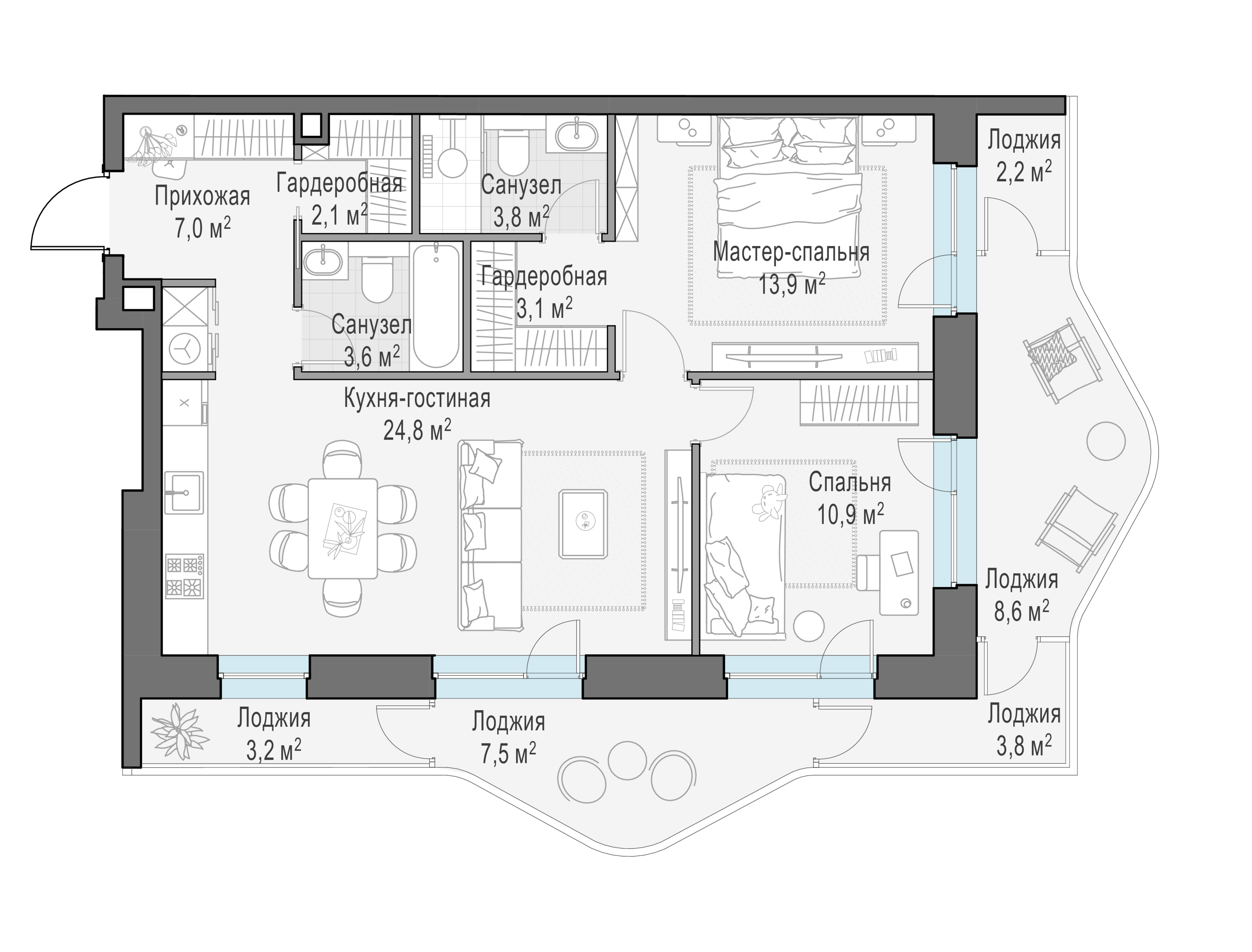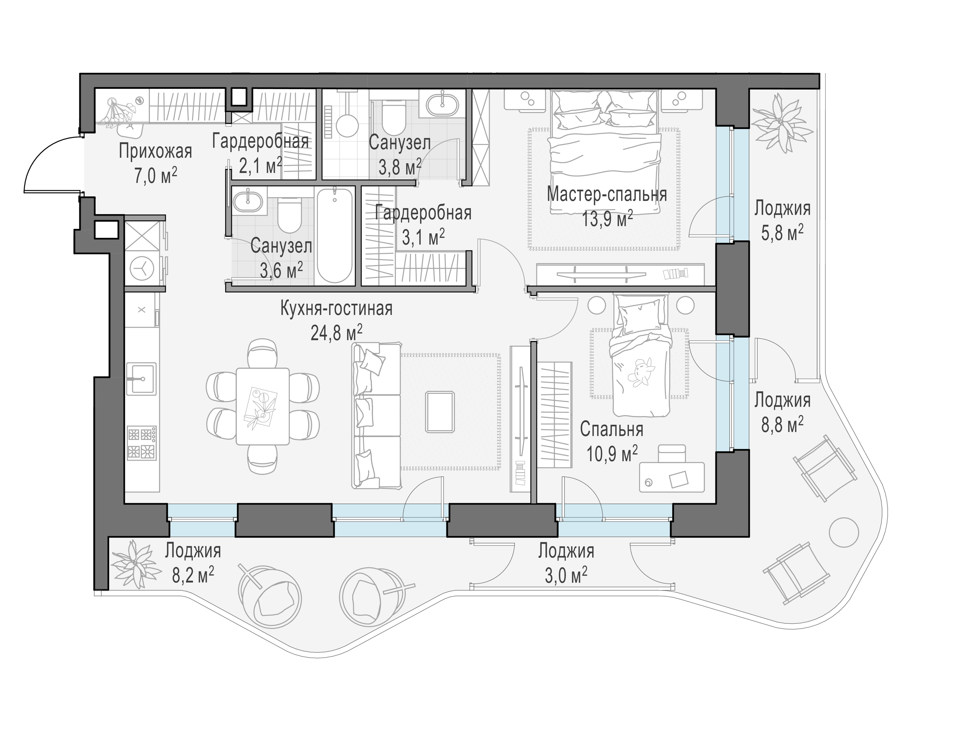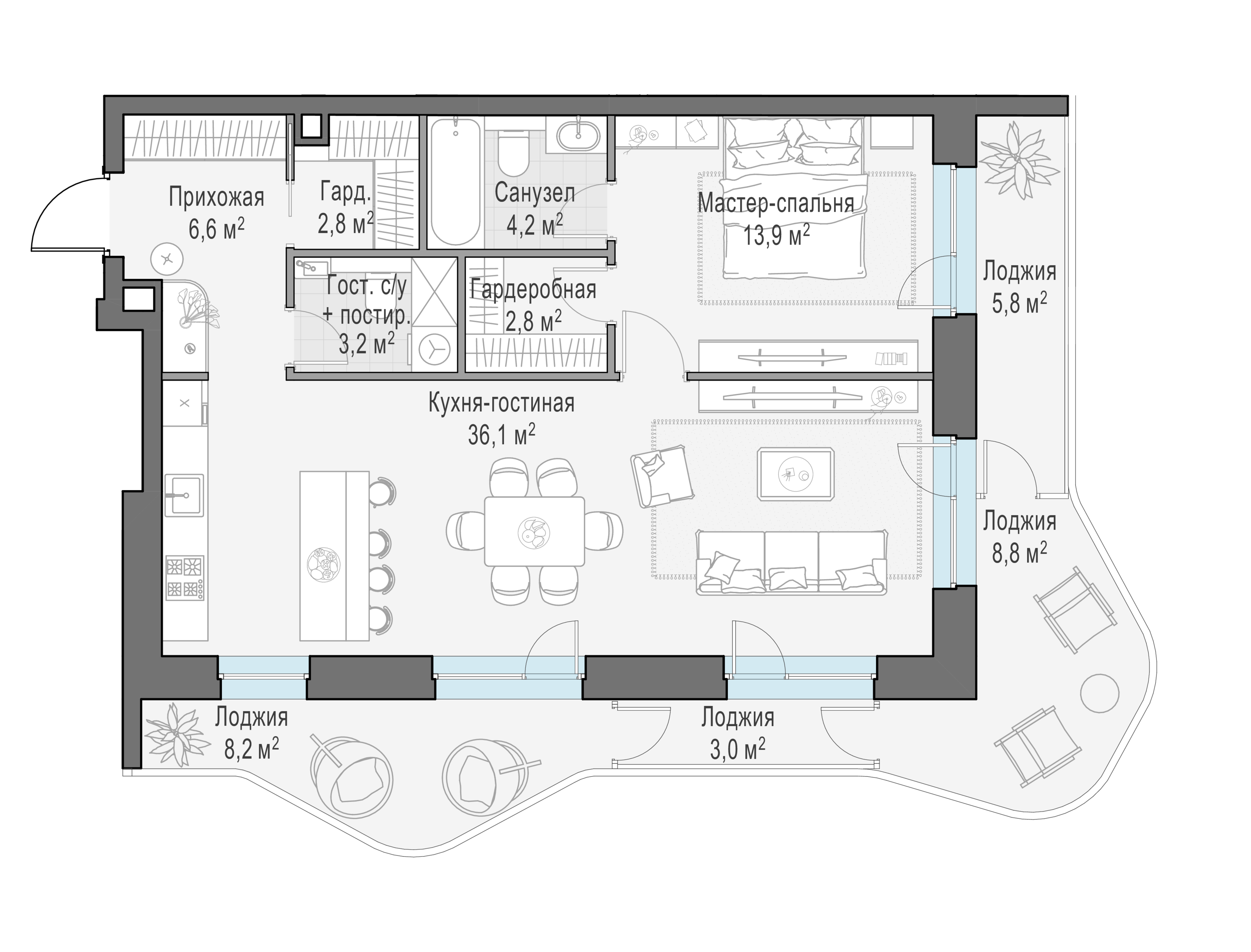 Купить 3к квартиру 102 м² в ЖК Moments (Моментс)