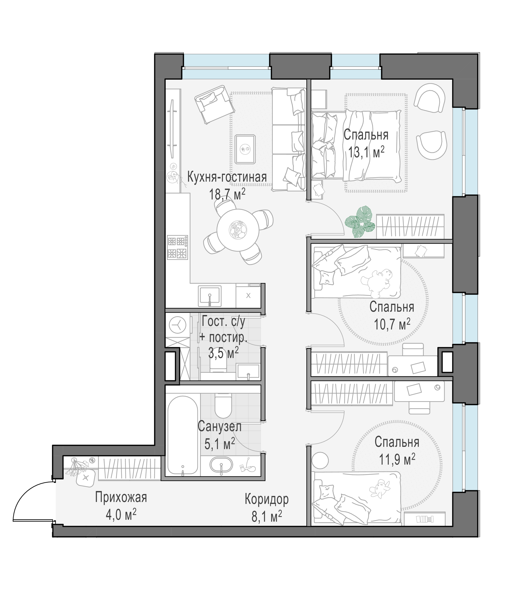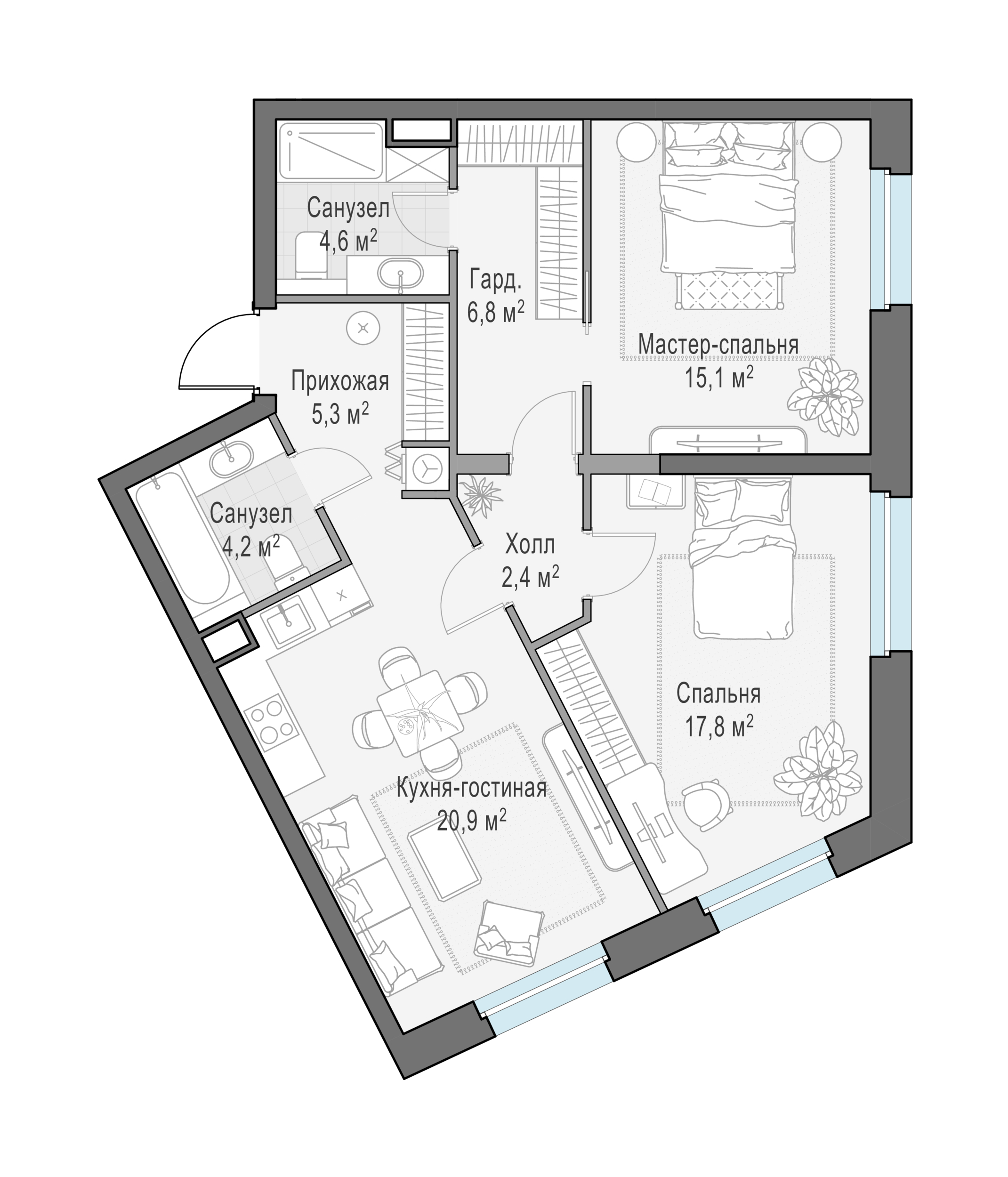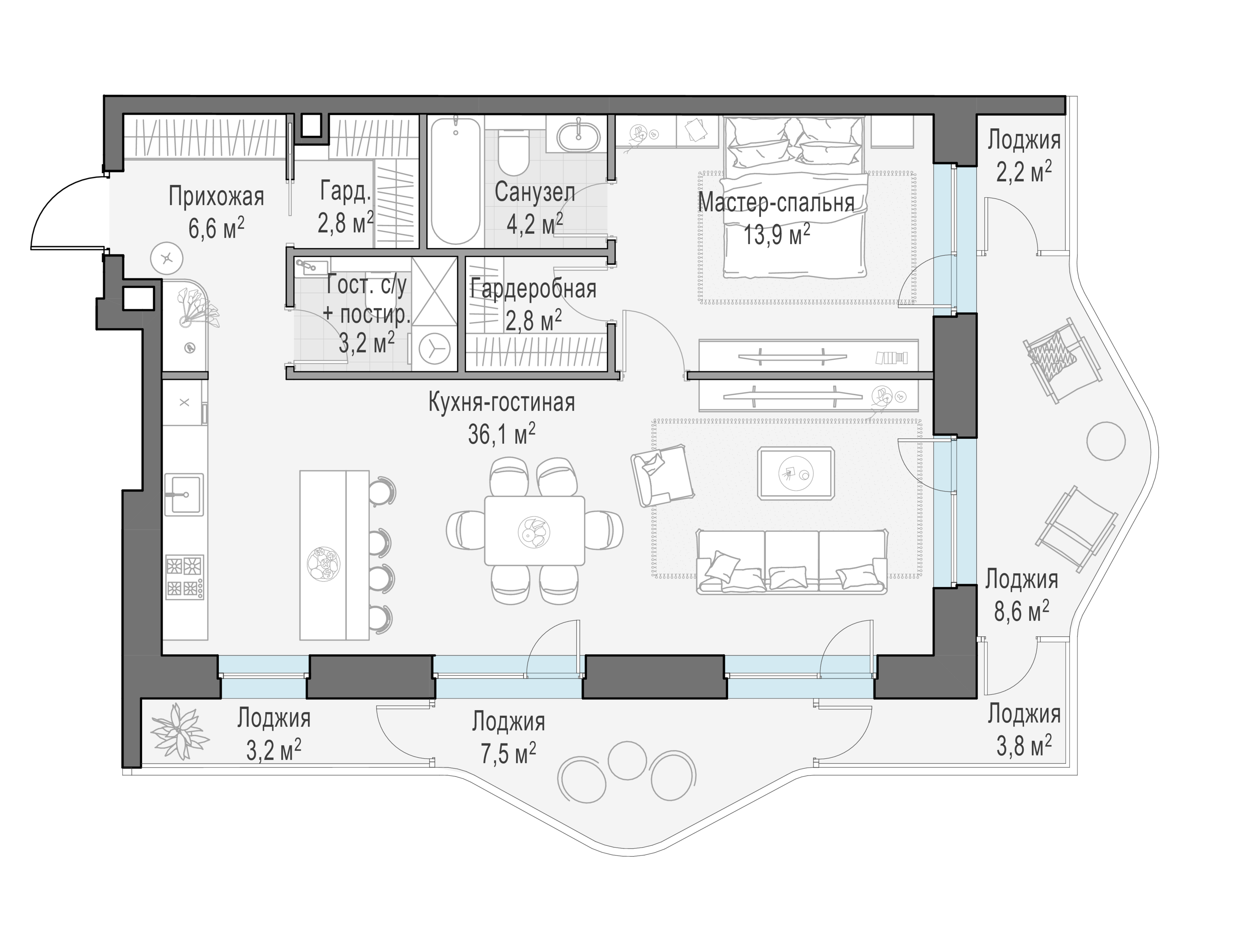 Купить 3к квартиру 102 м² в ЖК Moments (Моментс)
