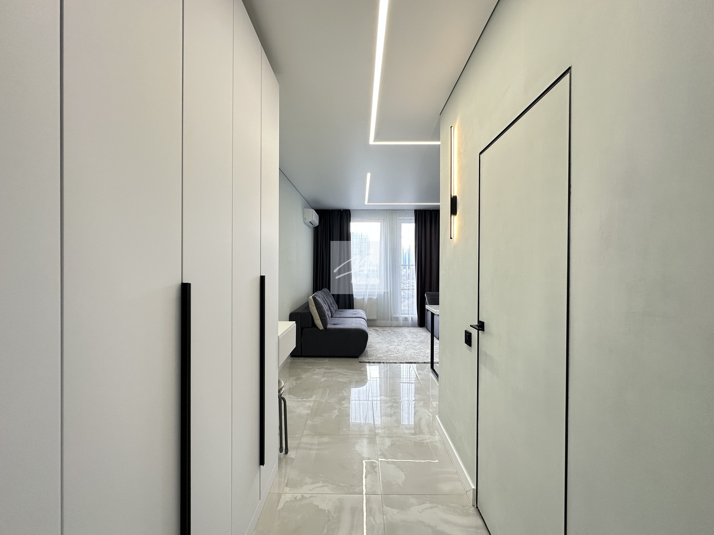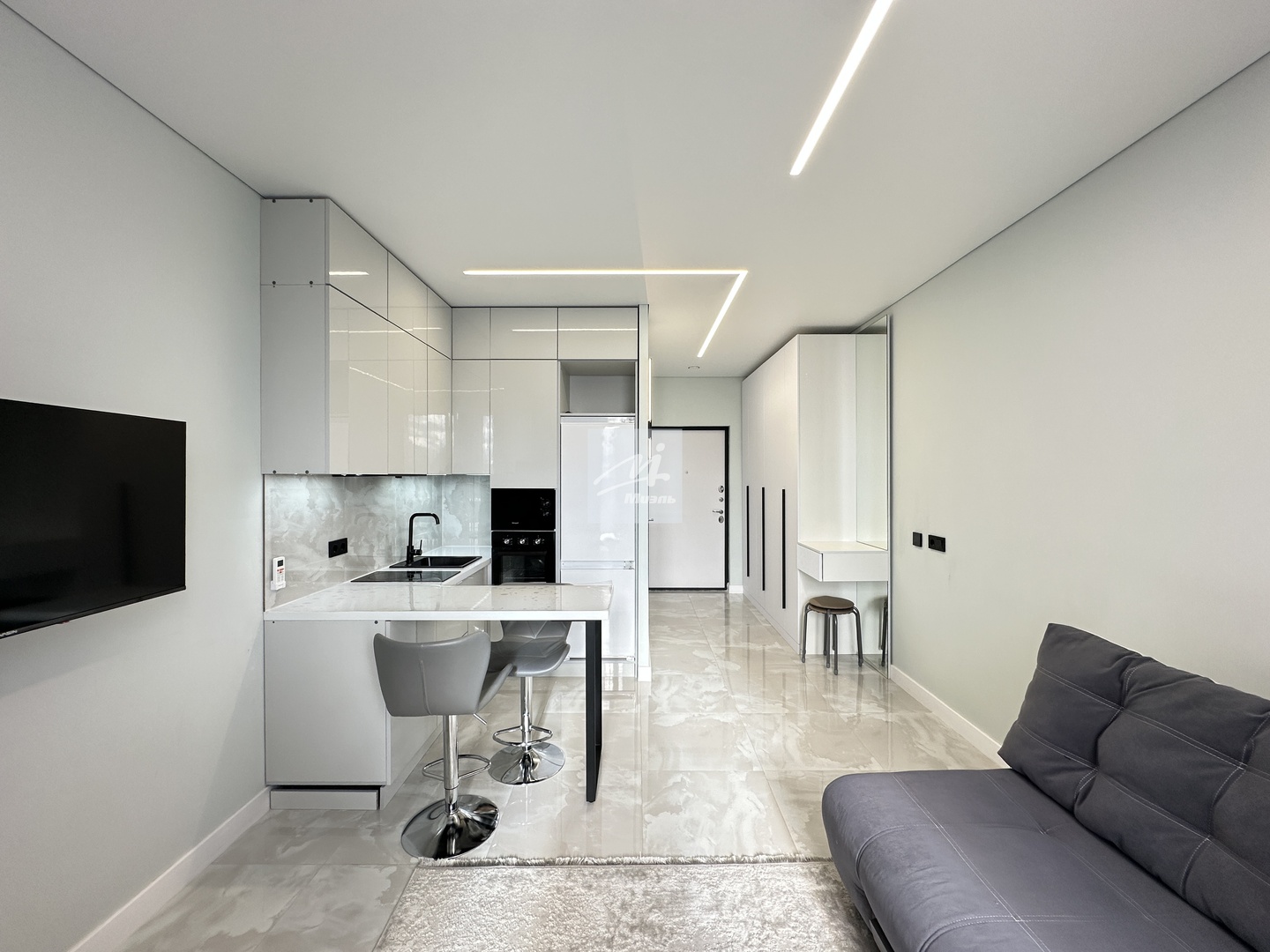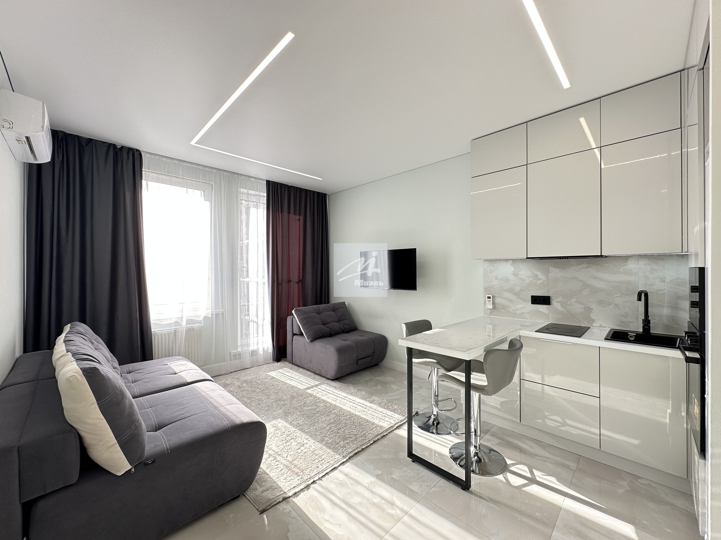 Описание квартиры*Апартаменты расположены на 9 этаже 21-этажного дома Бизнесс-класса!*Апартаменты полностью меблированы, а именно в коридоре находится большой вместительный шкаф, раскладной диван и кресло, кухонный гарнитур с встроенной техникой (микроволновая печь, духовой шкаф, плита, холодильник), телевизор, санузел с душевой зоной.*В комнате имеется французский балкон.*Апартаменты идеально подойдут молодым специалистам, которые ценят удобное расположение, современность и возможность быстро добраться до ключевых точек города, а также подойдет для инвестиции, и может приносить стабильный доход.*Мебель остается новому собственнику!!!!!