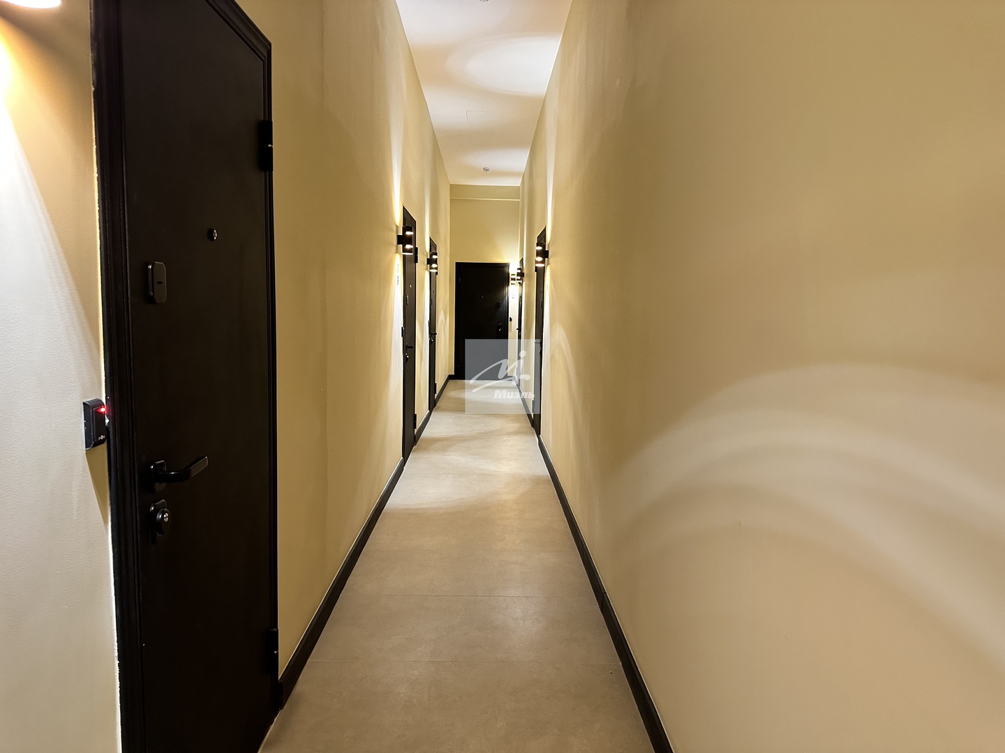 Стены покраска, полы керамогранит. Металлическая дверь, вход по магнитному ключу Скуд. Видеонаблюдение, шлагбаум, парковка во дворе.