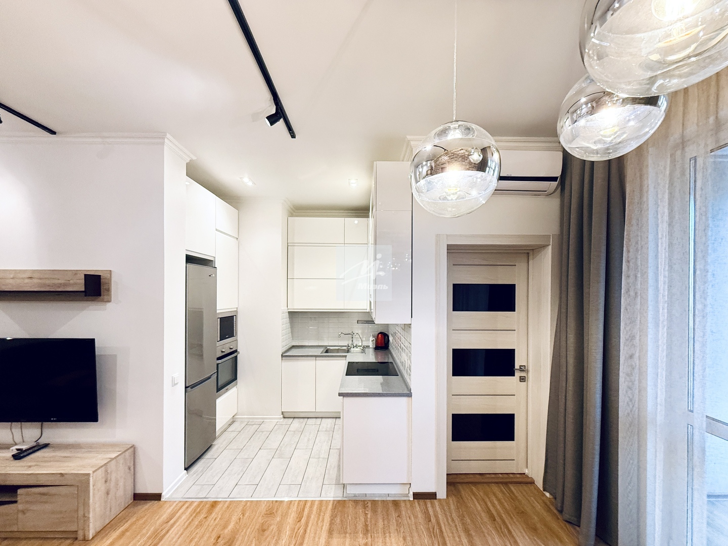 Вся необходимая техника; духовой шкаф, плита, вытяжка, посудомоечная машина, электрический чайник, 2 телевизора, стиральная машина, холодильник.