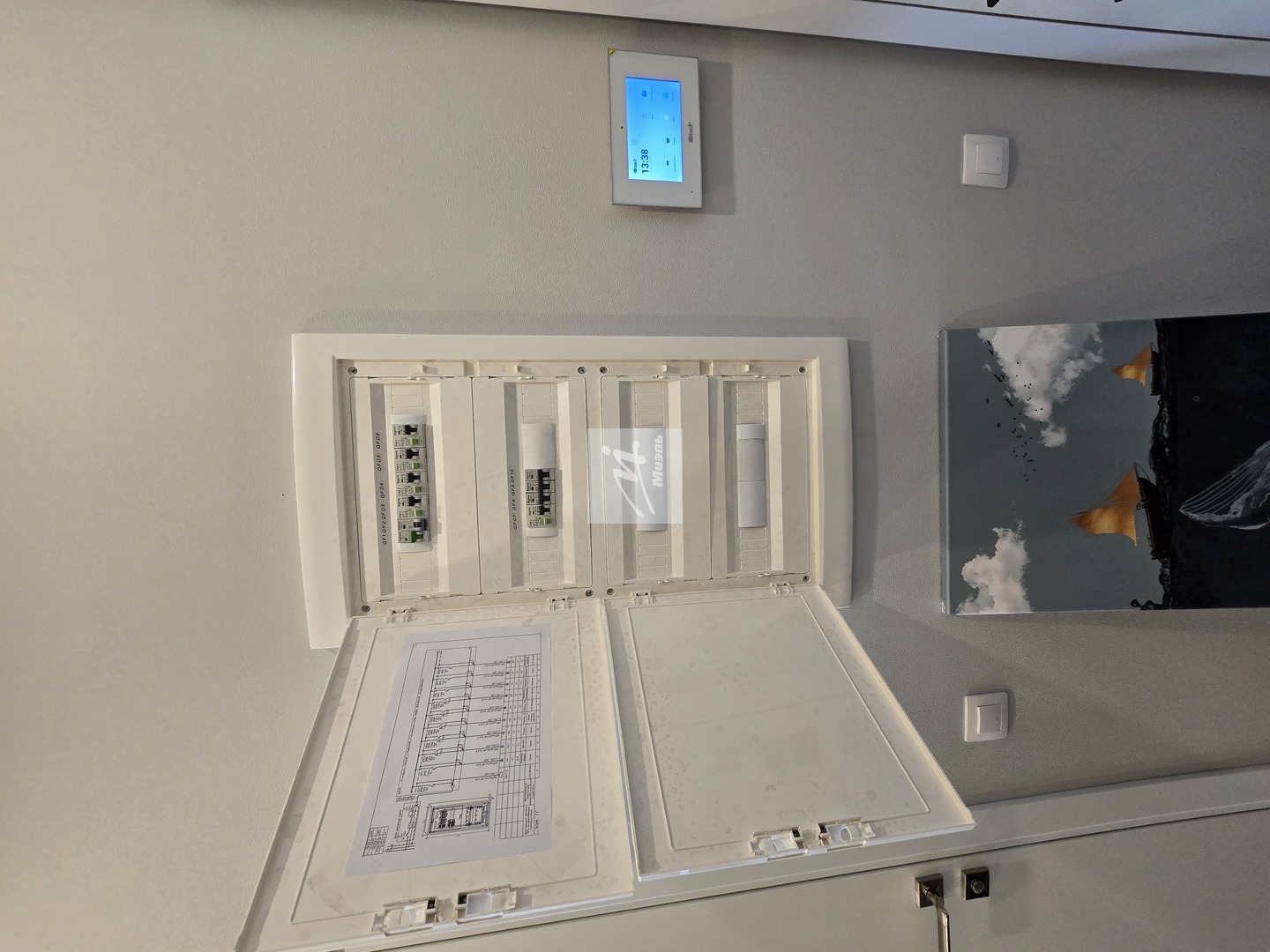 В комнате установлен кондиционер, умный телевизор Samsung 40″, а также освещение (торшер и люстра) с поддержкой системы «умный дом». Рабочее место оборудовано креслом Thunder X3 и столом с регулировкой высоты до стоячего положения Ergostol. Римская штора блэкаут обеспечивает комфортный сон в любое время суток.