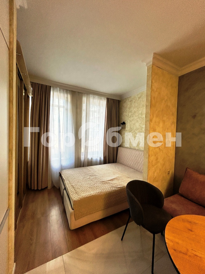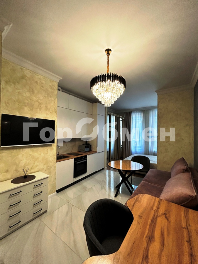 Студия имеет общую площадь, 30 кв.м., с выходом на закрытый двор со спортивными и детскими площадками. Полностью оборудована всем необходимым для комфортной жизни.