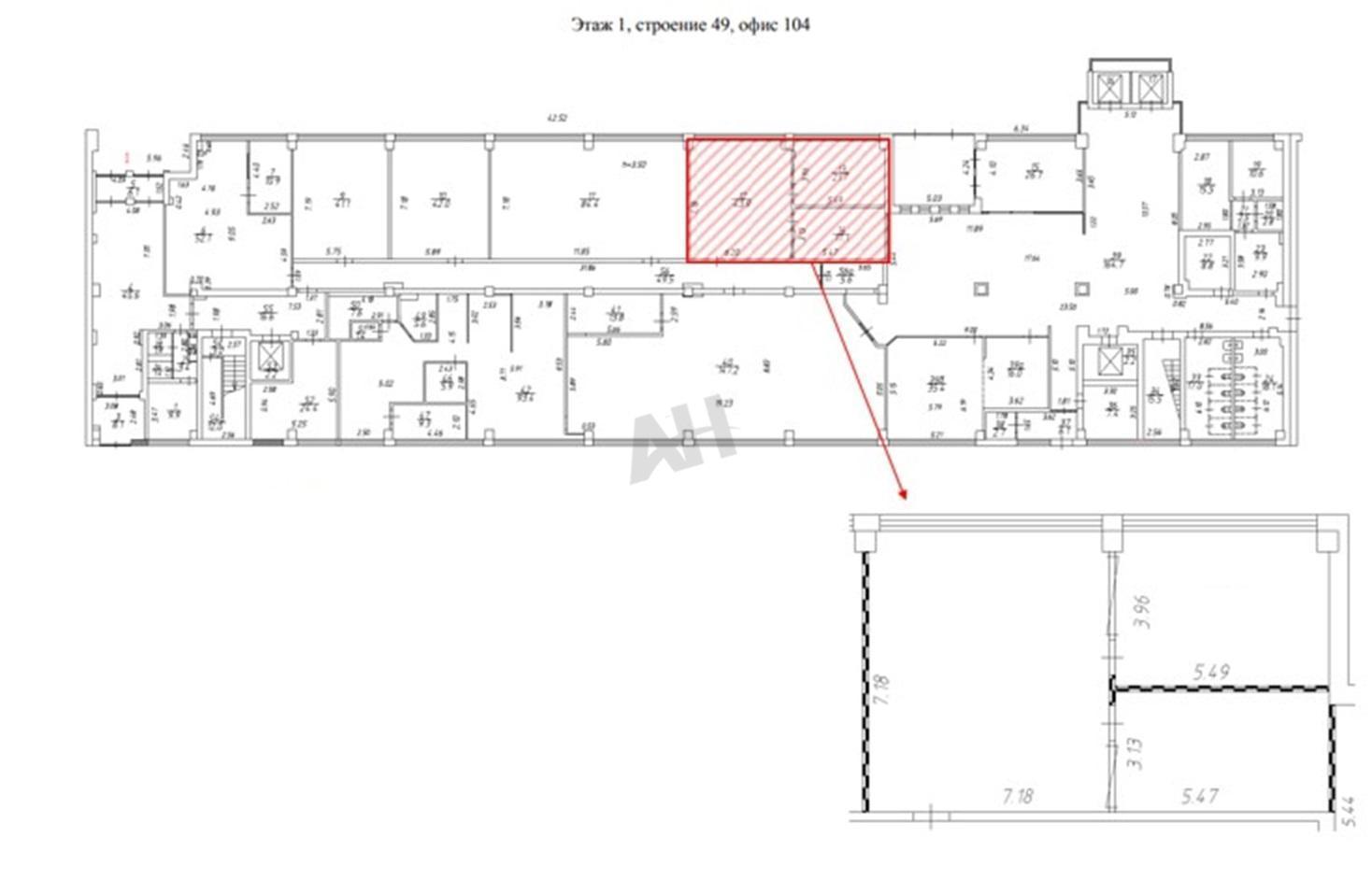 Лот №1075330 Предлагается в аренду помещение под офис 95,6 м², расположенное на первом этаже жилого дома.