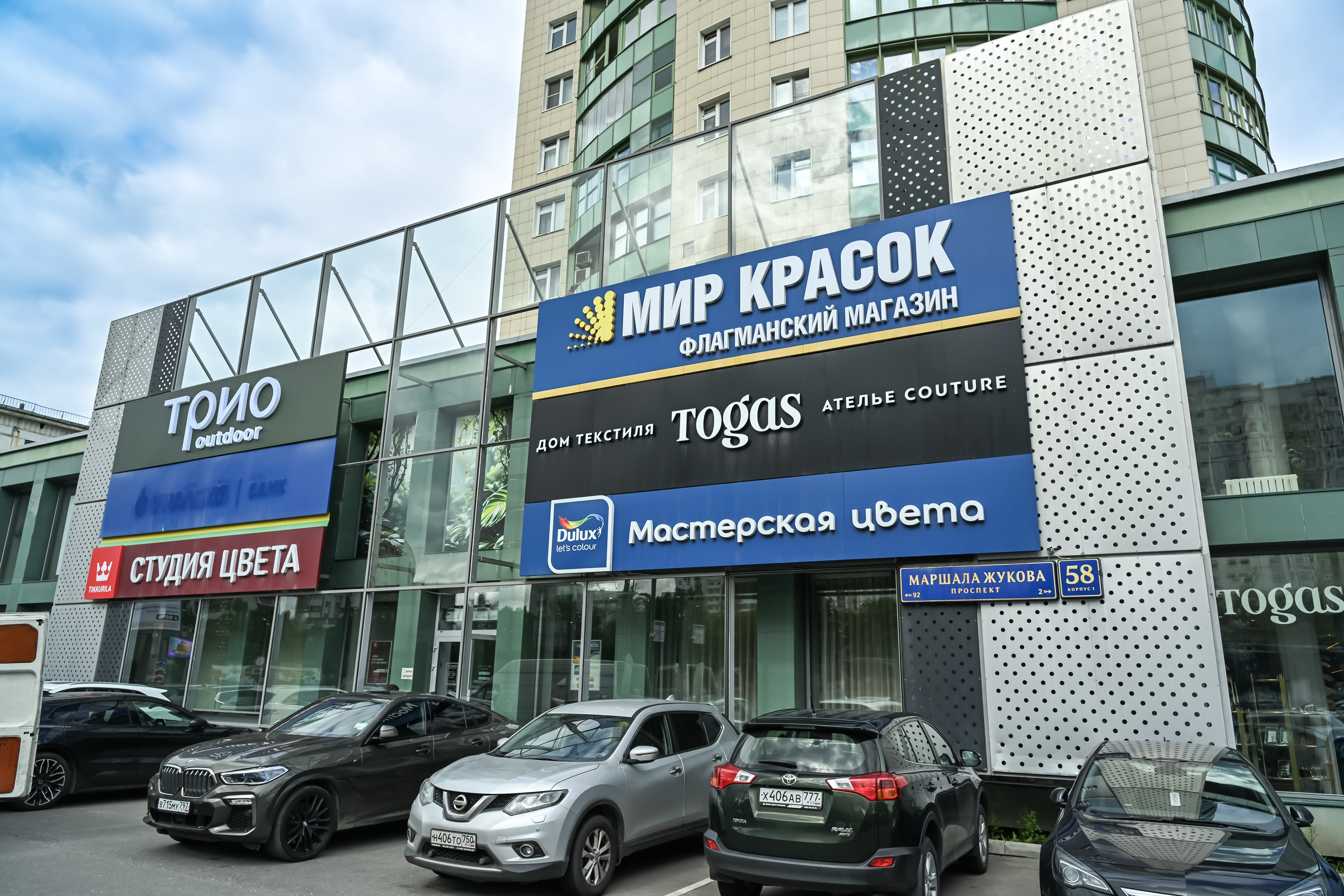 Архитектурный ансамбль "Серебряный квартет", состоящий из четырех стилобатов, расположен на первой линии крупнейшей столичной магистрали - проспекта Маршала Жукова, вдоль интенсивного пешеходного и автомобильного потока, в окружении густонаселенного жилого массива.