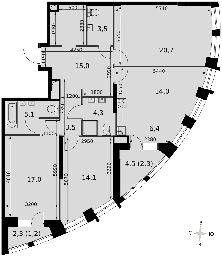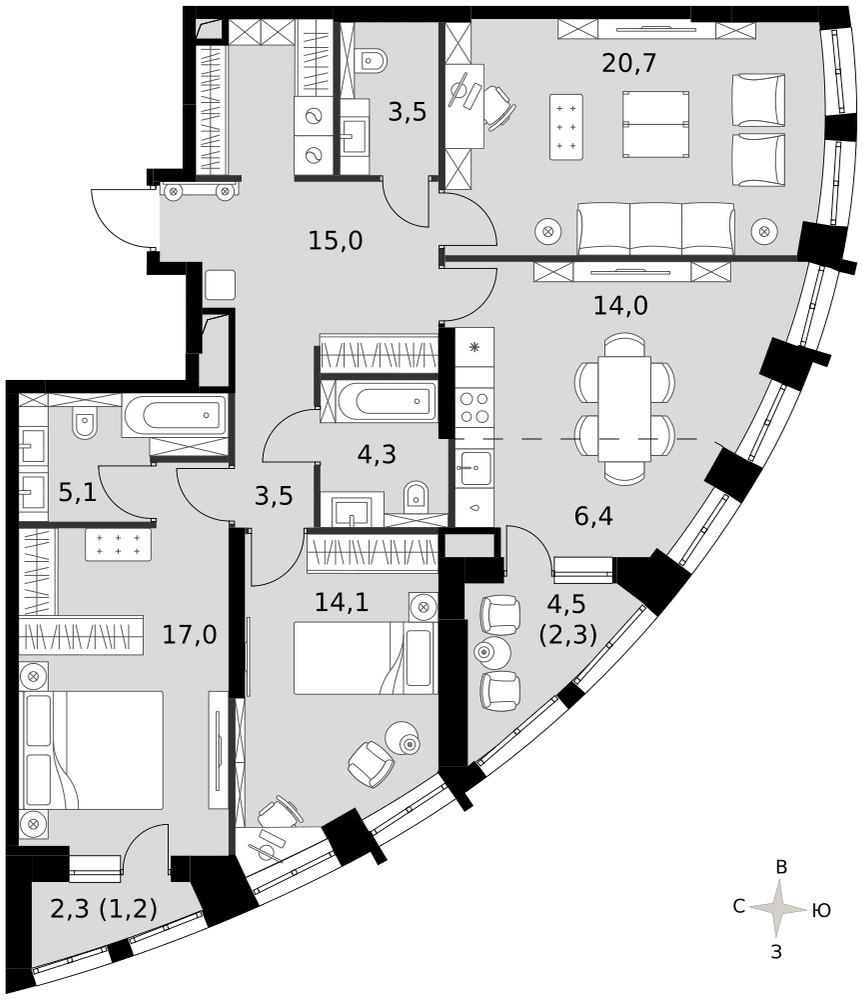 Купить 2к квартиру 106 м² в клубном доме Ренессанс