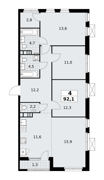 Купить 2к квартиру 77 м² в квартале Станиславский