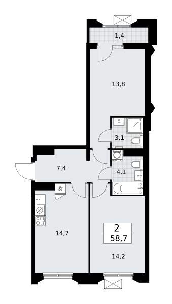 Купить 2к квартиру 56 м² в ЖК Зелёный Парк