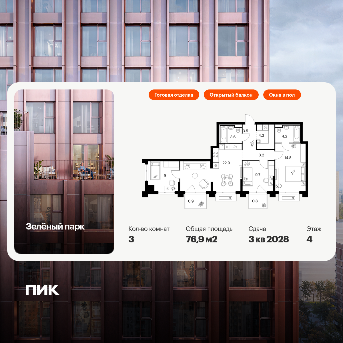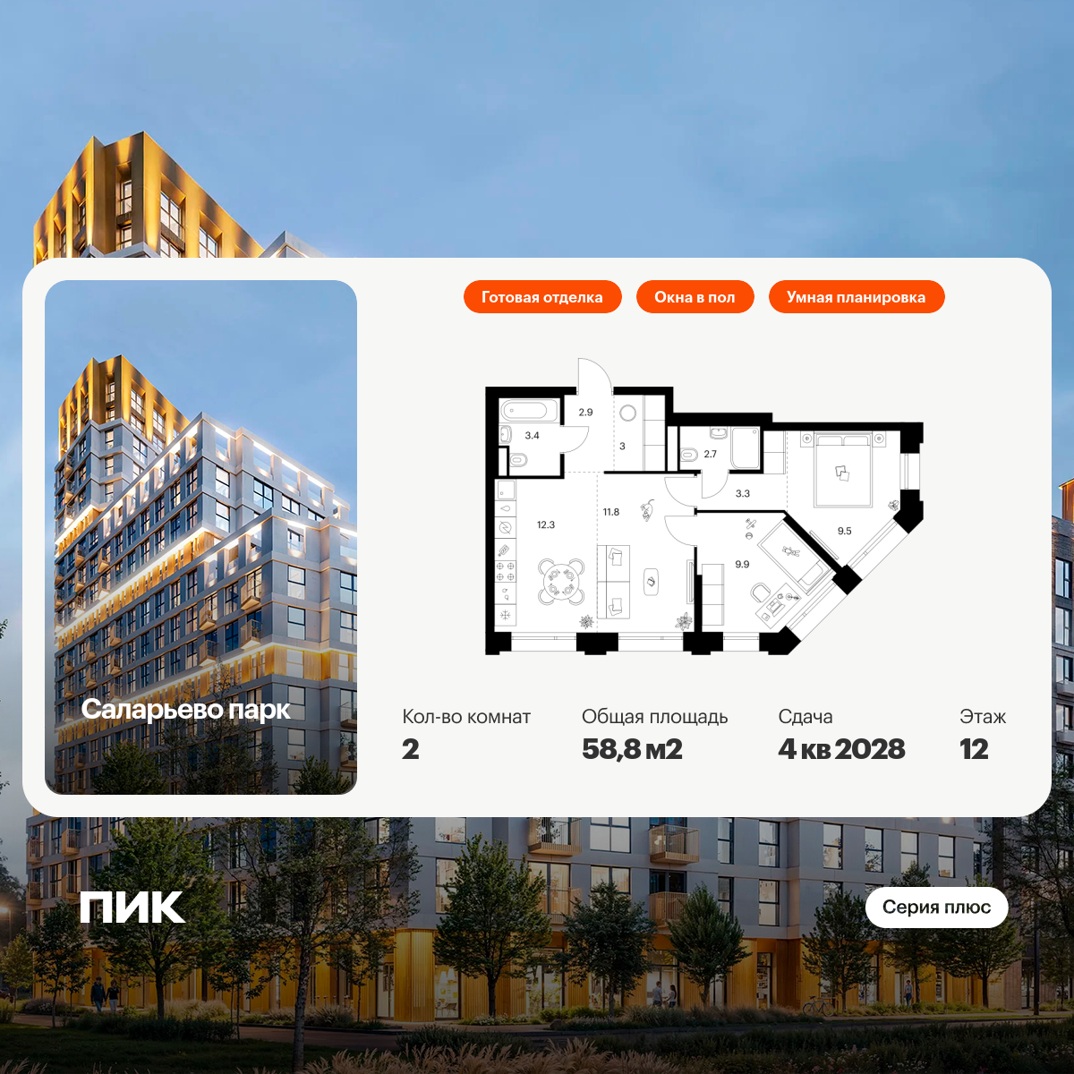 Скидка 9% на ограниченный пул при 100% оплате наличными / семейной ипотеке / рассрочке / стандартной ипотеке и других ипотечных программах от ГК ПИК. Скидка 1% по промокоду на покупку квартиры при прохождении игры в Telegram-канале. Ипотека 0,1% с ПВ от 30% на 1 год.