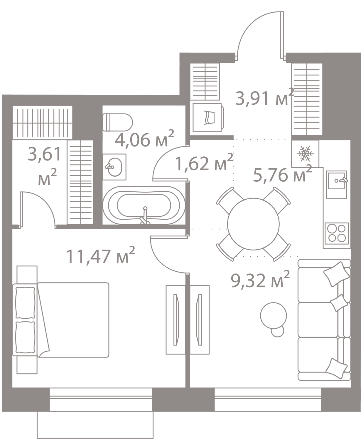 42 м²