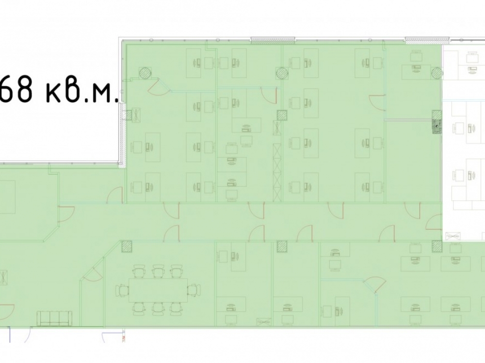 . Строение 9, шестой этаж. Полезная площадь 368м2. Смешанная планировка: 7 кабинетов, переговорная, кухня. с/у на этаже. Выполнена офисная отделка. Установлены системы приторно-вытяжной вентиляции и кондиционирования.