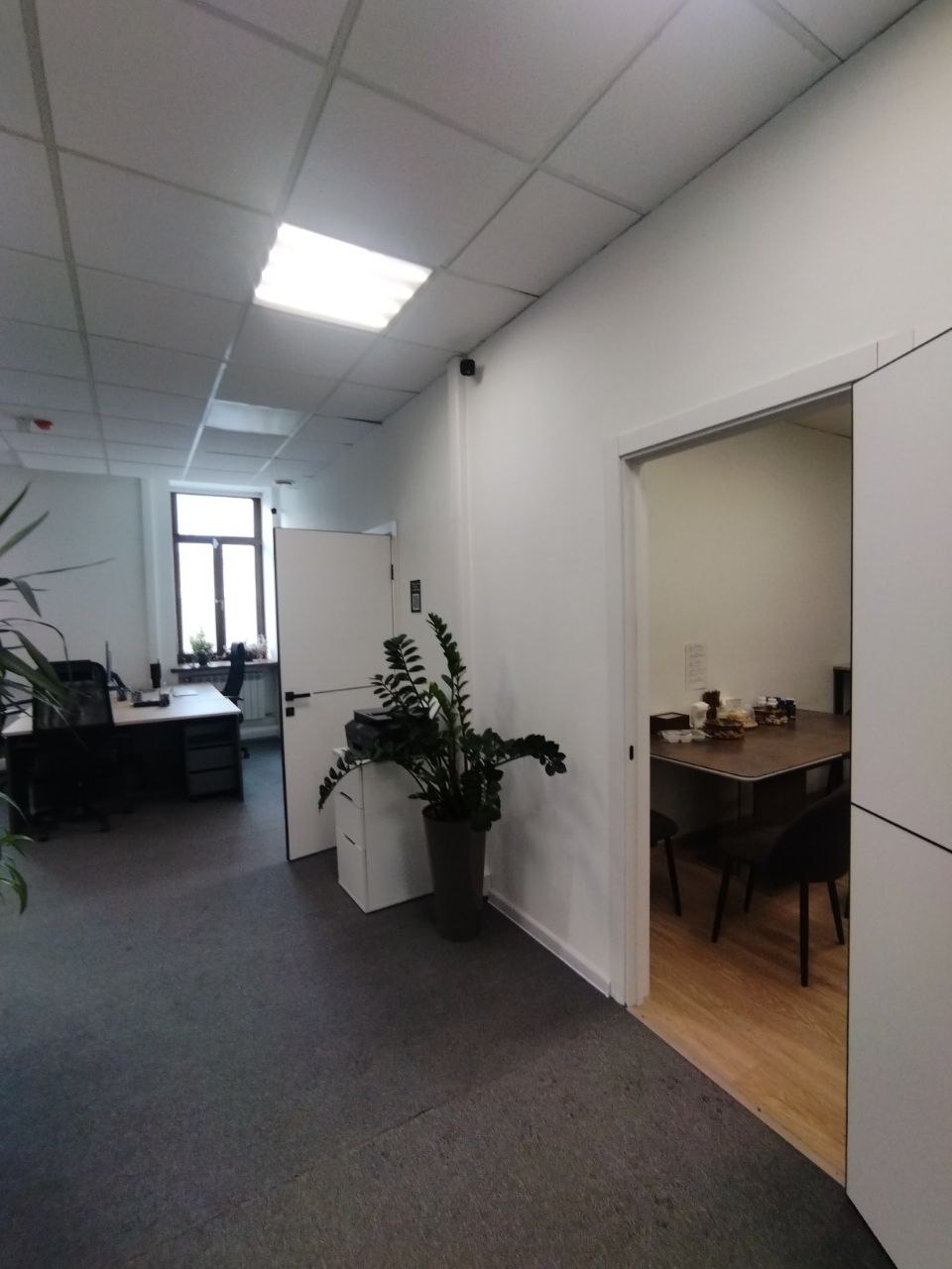 Планировка помещения на сегодняшний день: зона ресепшн, две переговорные, кухня (полностью оборудованная и со своим с/у), с/у, серверная, 6 кабинетов, возможно увеличение до 7.