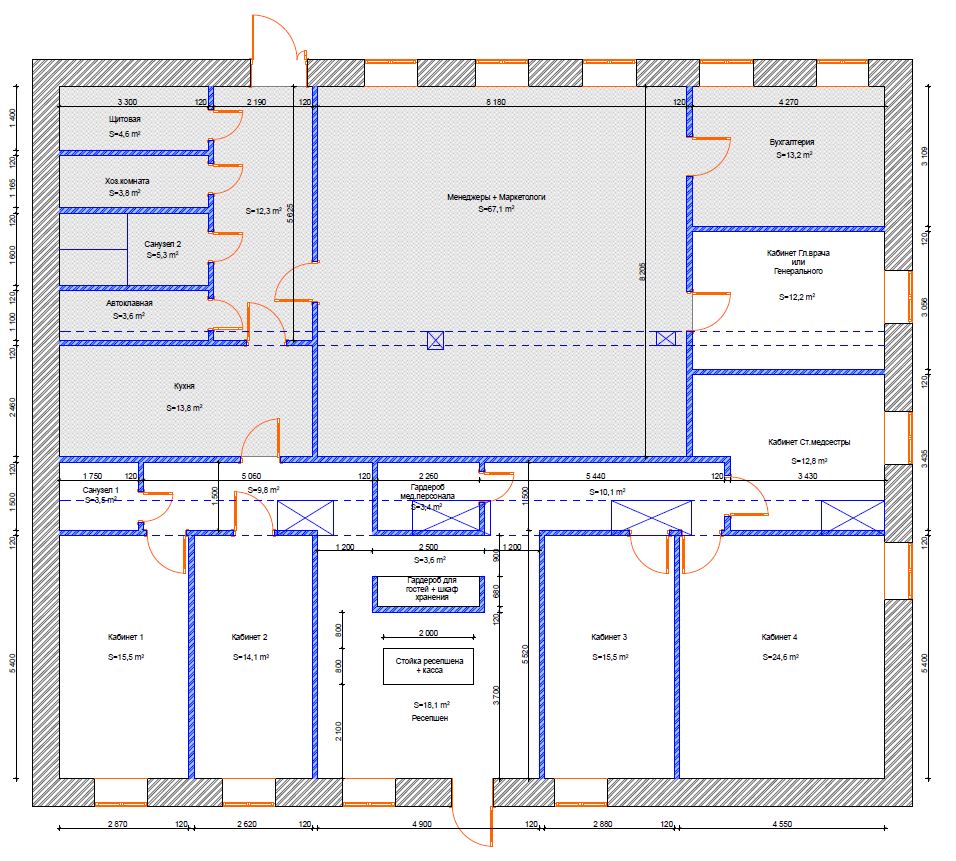 1)134,6 м2 - 2 кабинета, 2 с/у,